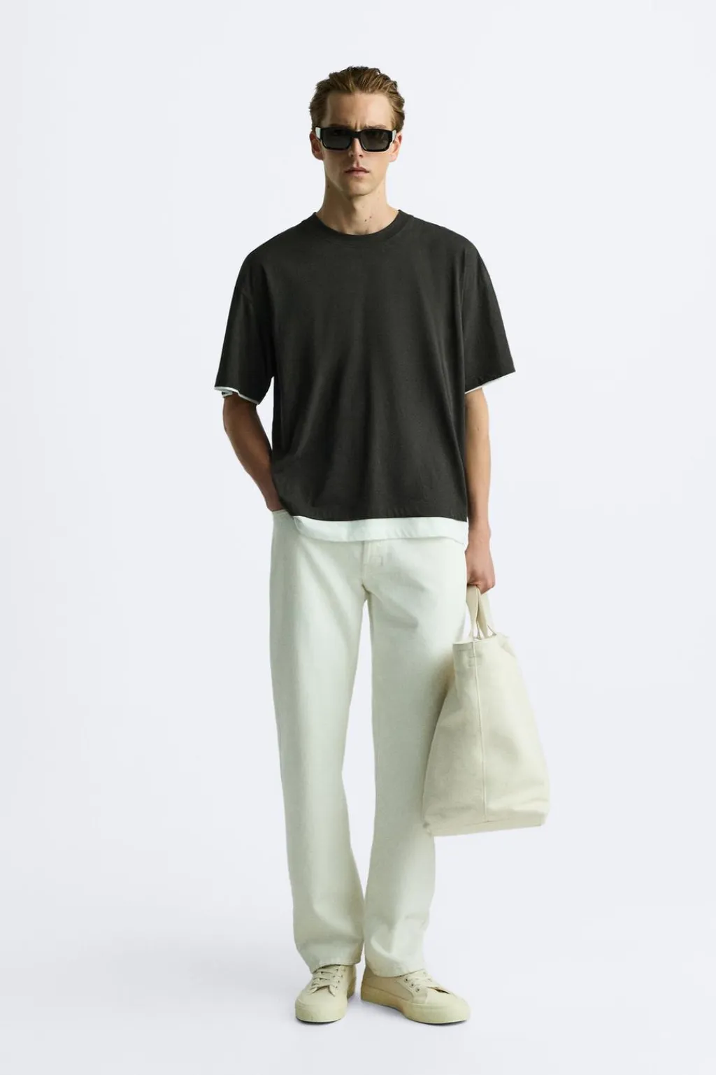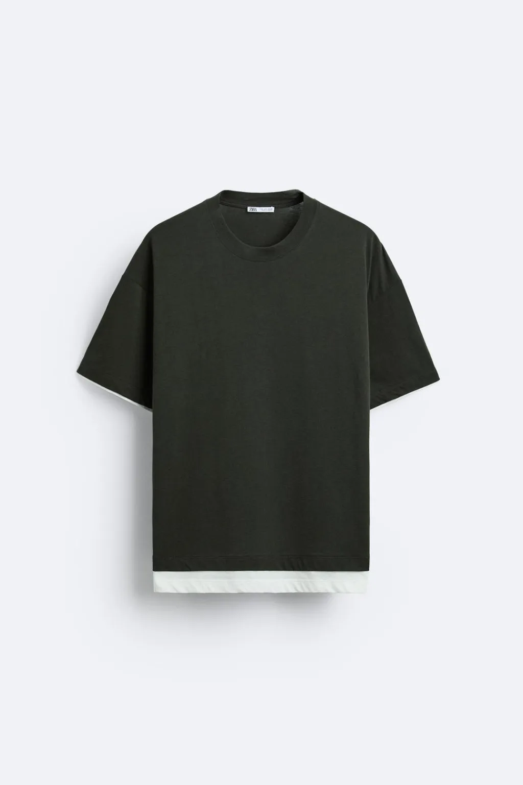 Camiseta relaxed fit. Cuello redondo y manga corta. Bajo con acabado doble combinado a contraste.