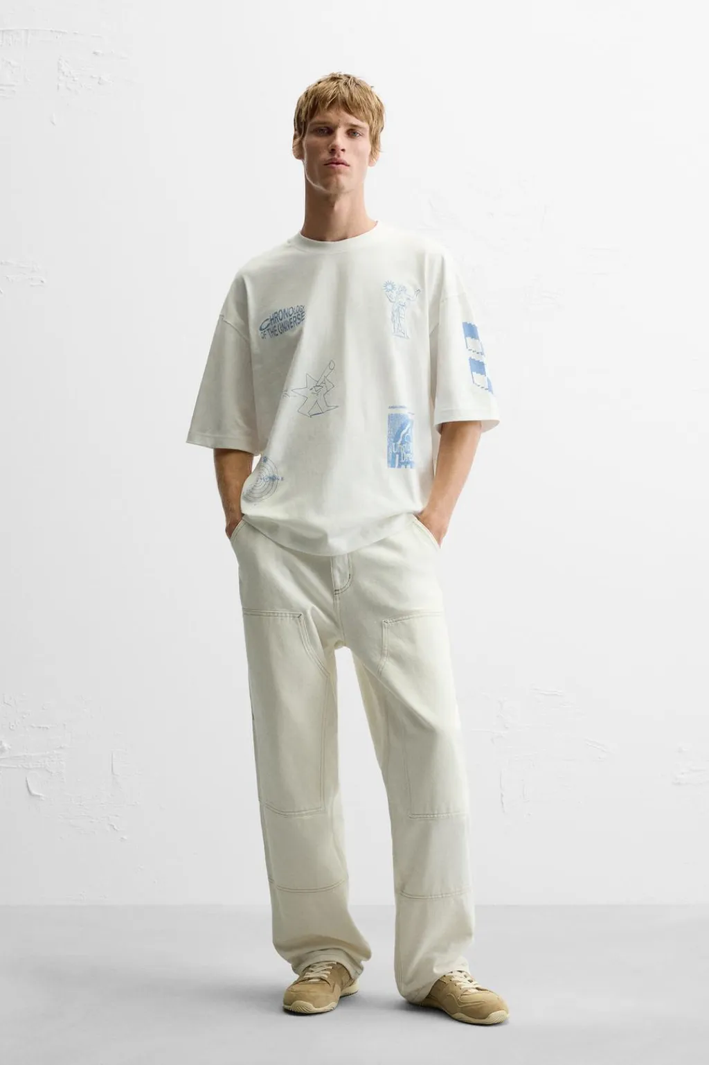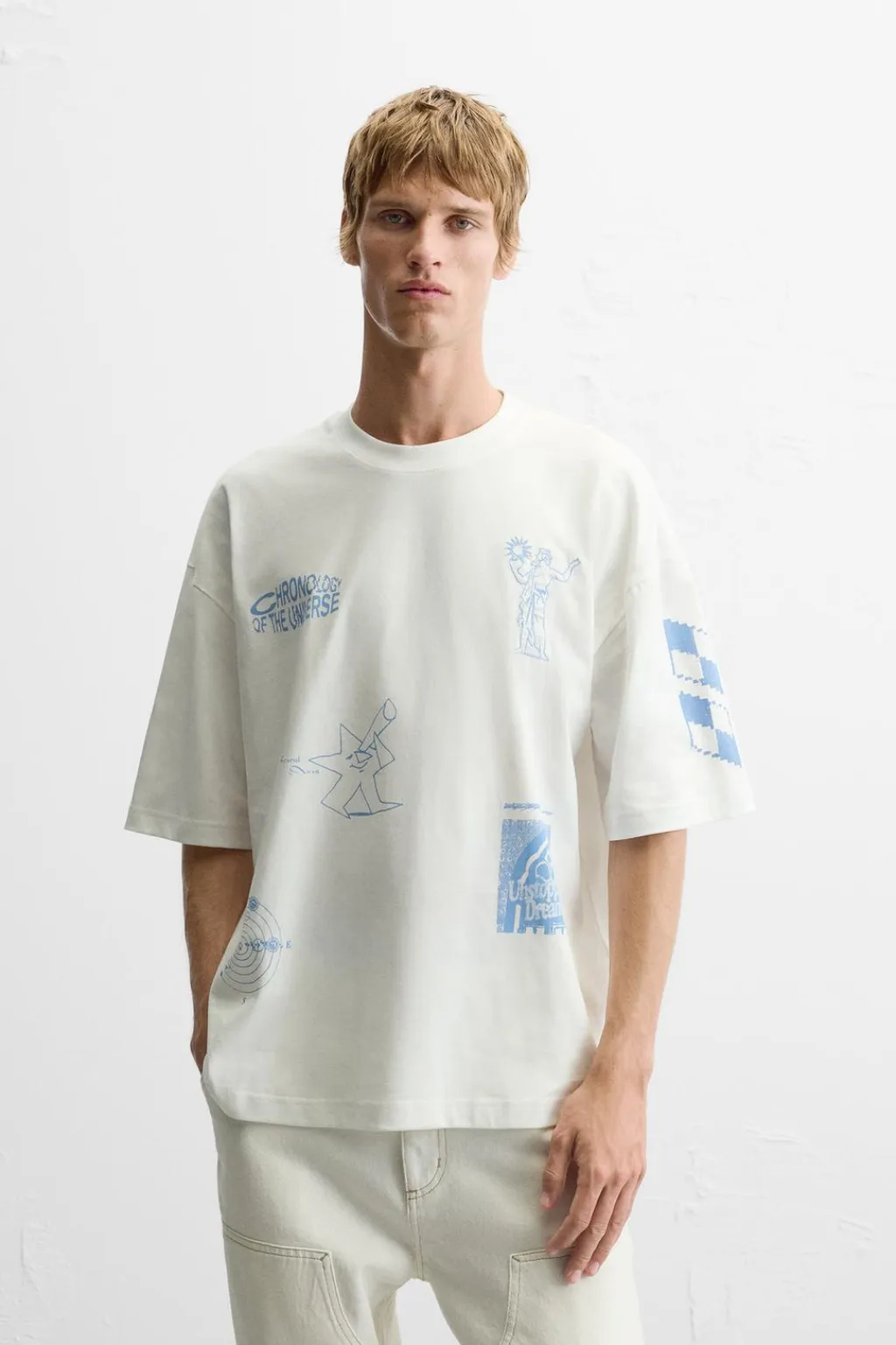 Camiseta relaxed fit. Cuello redondo y manga corta. Detalle de estampaciones y bordados combinados a contraste en toda la prenda.