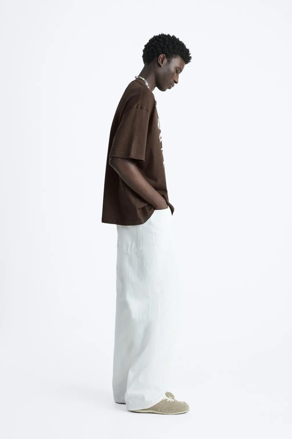 Camiseta relaxed fit. Cuello redondo y manga corta. Estampación frontal combinada a contraste.