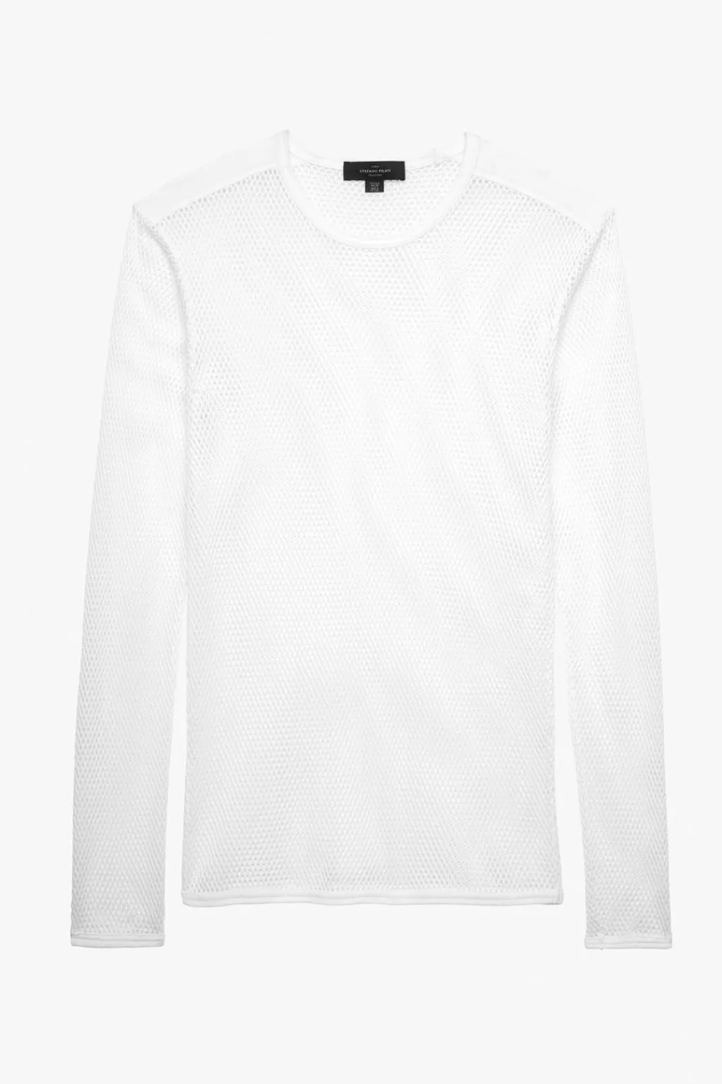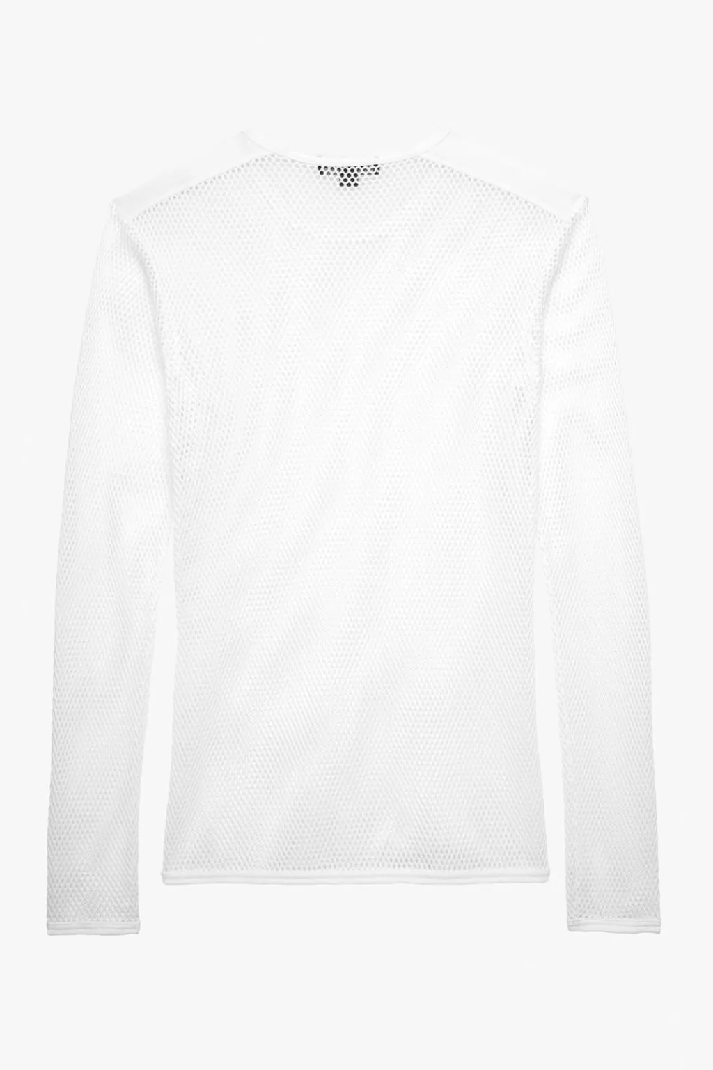 Camiseta slim fit confeccionada en tejido con estructura abierta. Cuello redondo y manga larga.