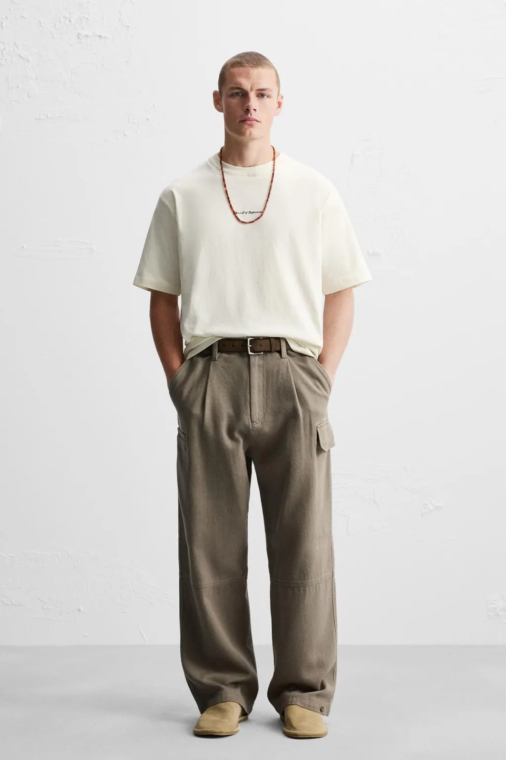 Camiseta relaxed fit. Cuello redondo y manga corta. Texto bordado en delantero combinado a contraste con estampación fotográfica bordada en espalda.
