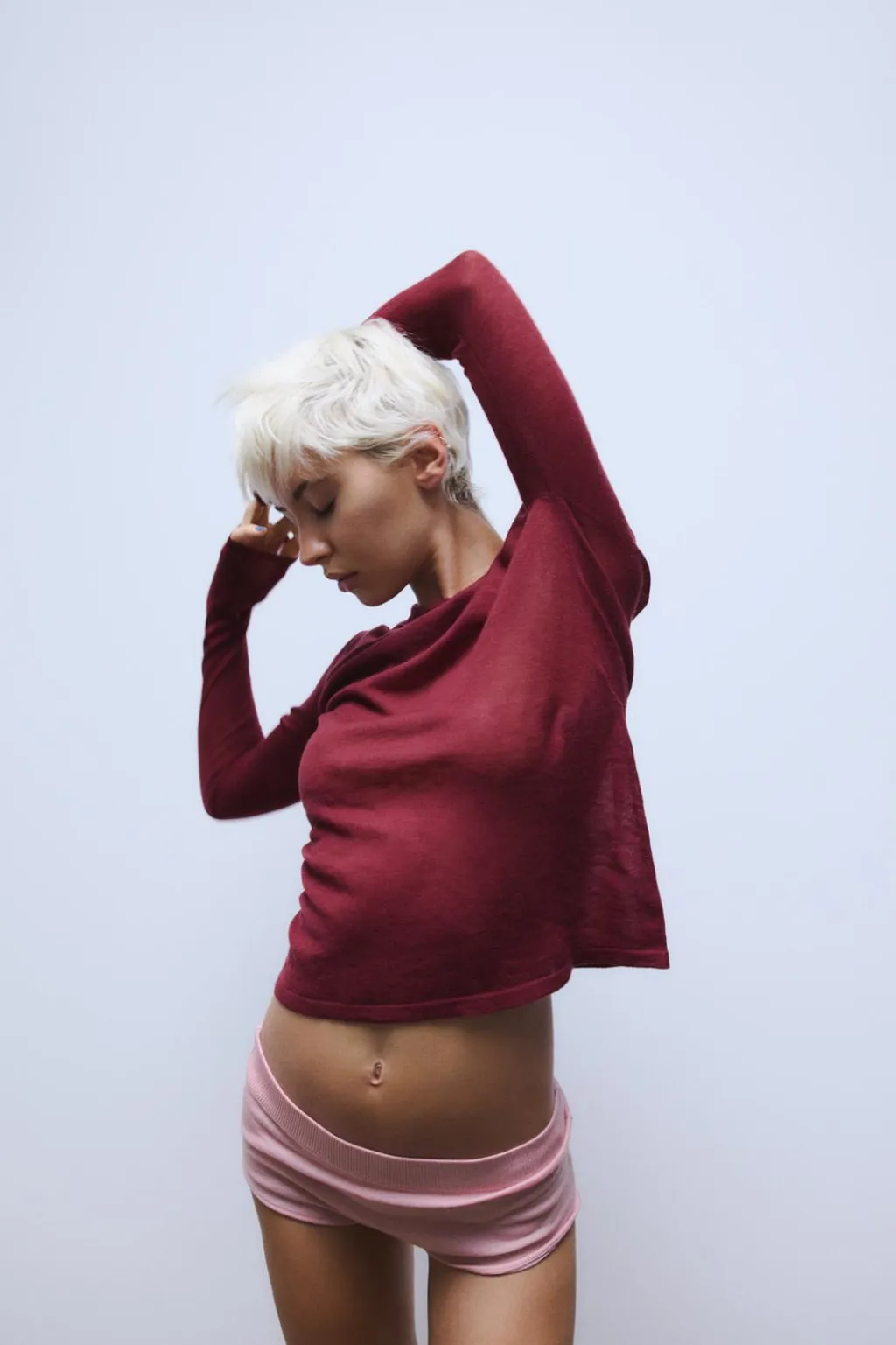 Camiseta confeccionada en hilatura de lana 100%. Cuello redondo y manga larga.