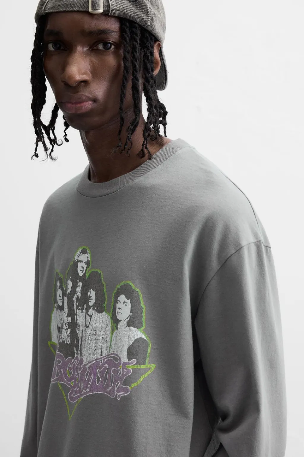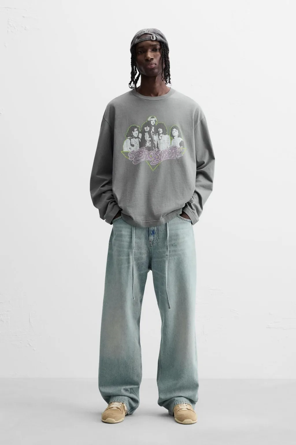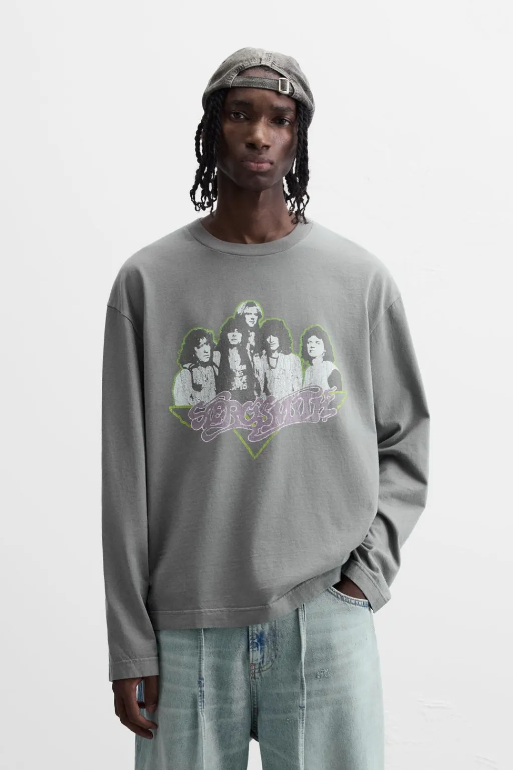 Camiseta relaxed fit. Cuello redondo y manga larga. Efecto lavado. Estampación frontal de gráfico Aerosmith © combinado a contraste. Acabados irregulares.