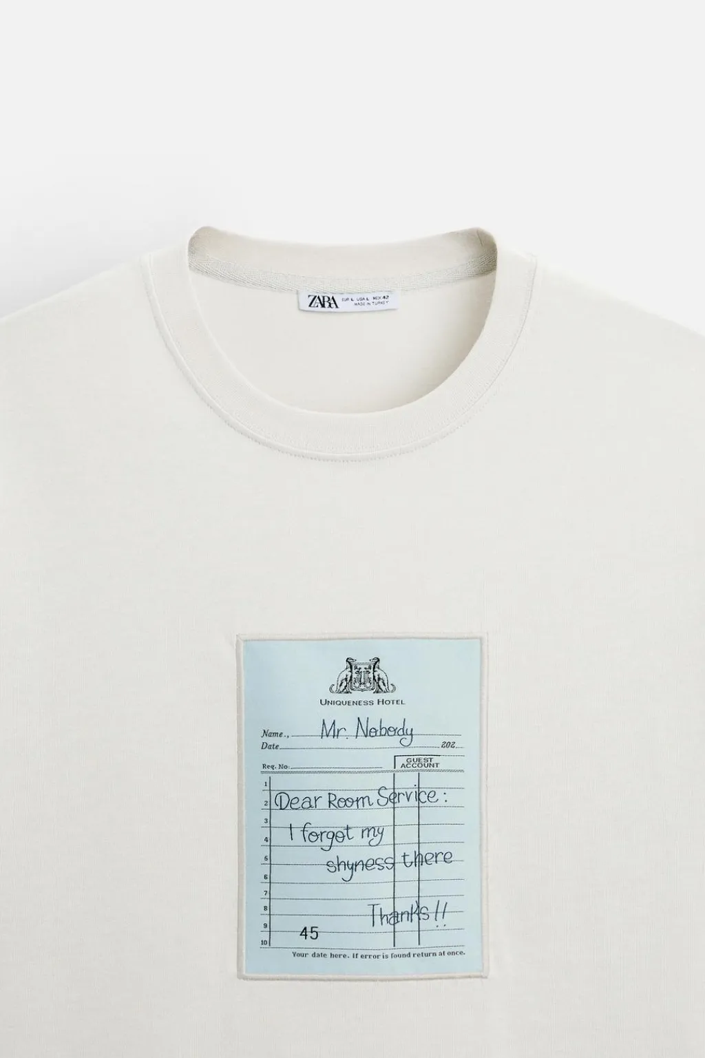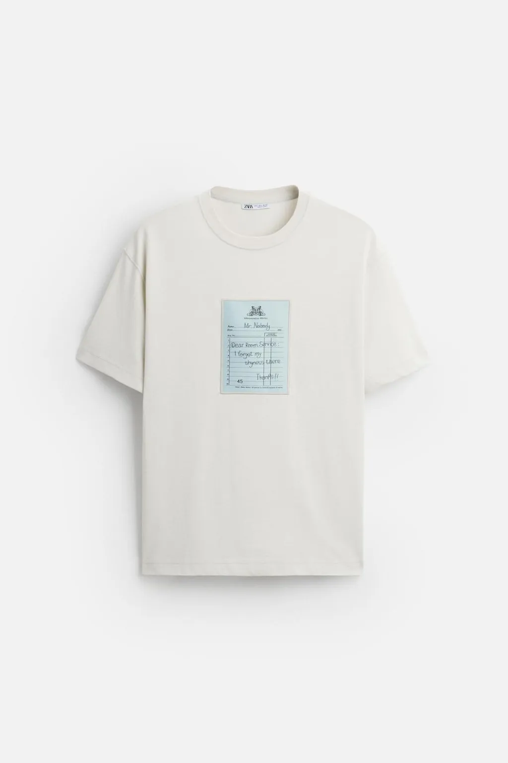 Camiseta regular fit con cuello redondo y manga corta. Aplicación de parche frontal combinado a contraste en delantero.