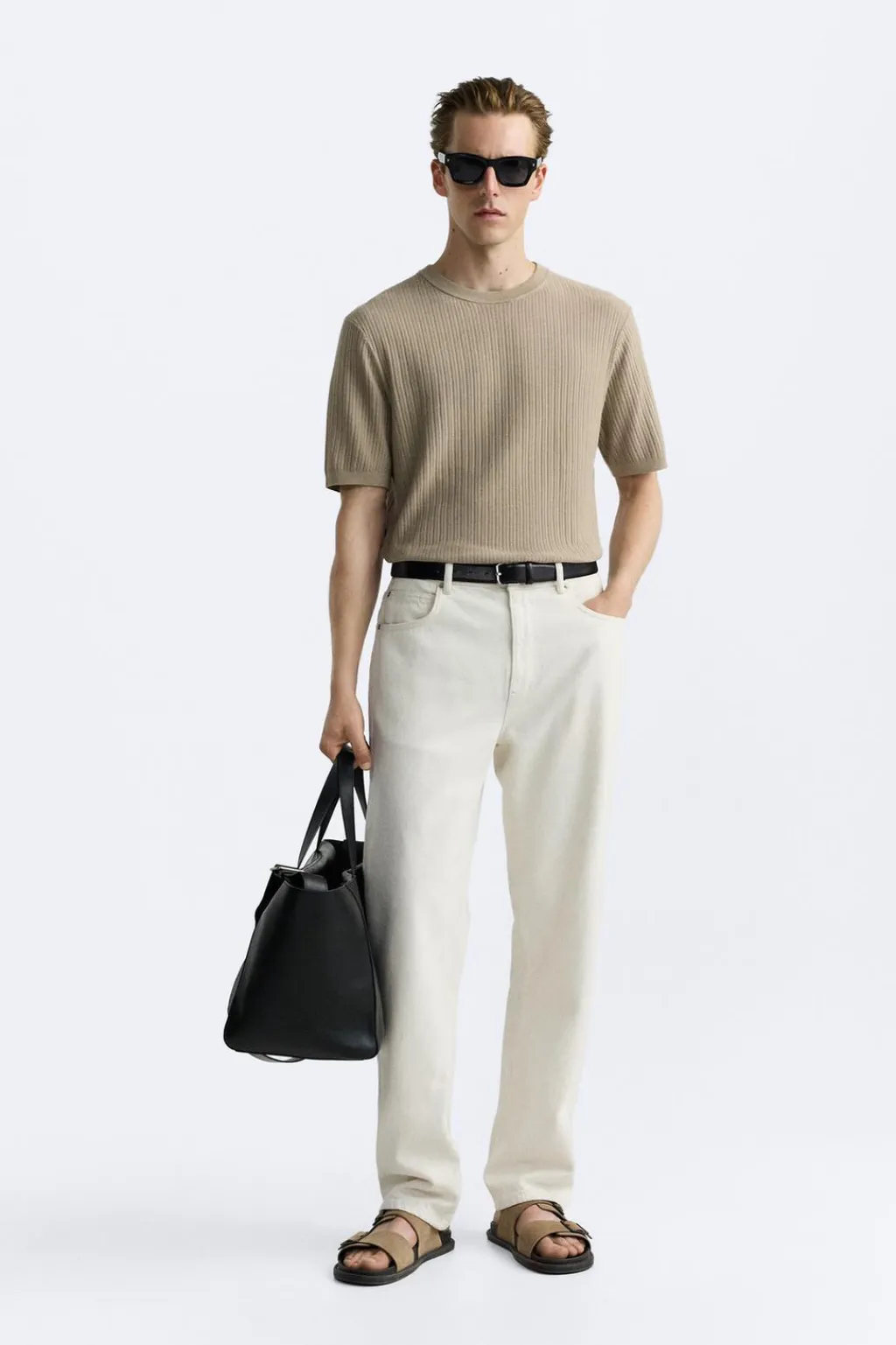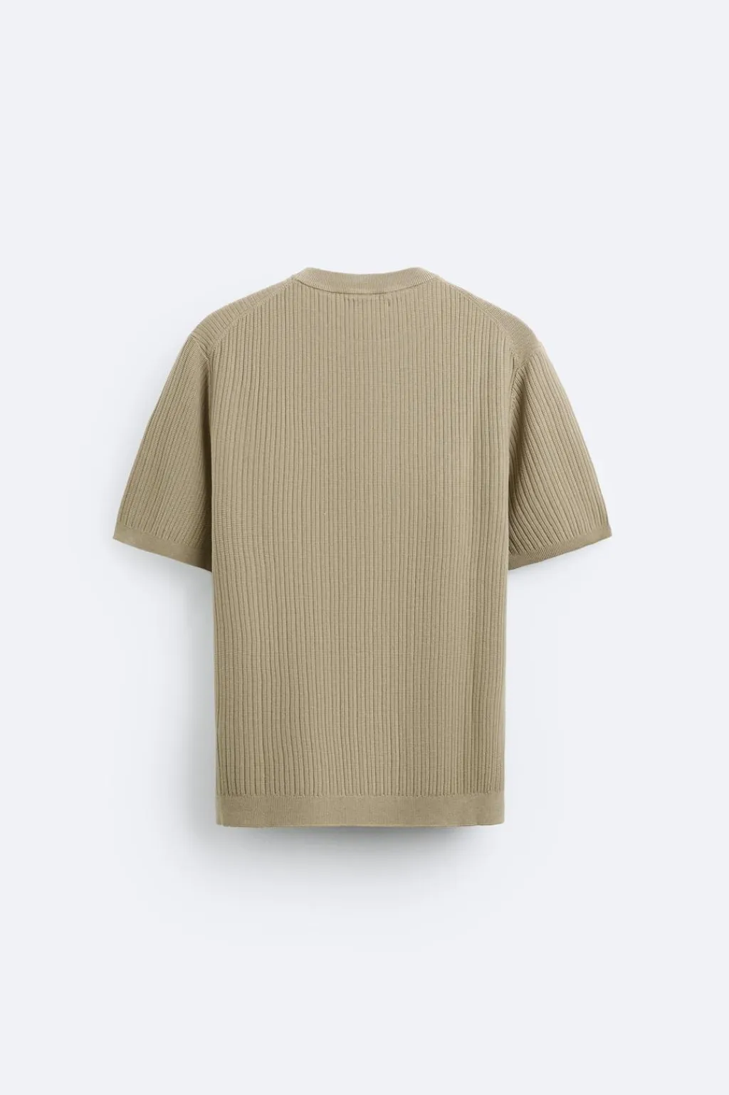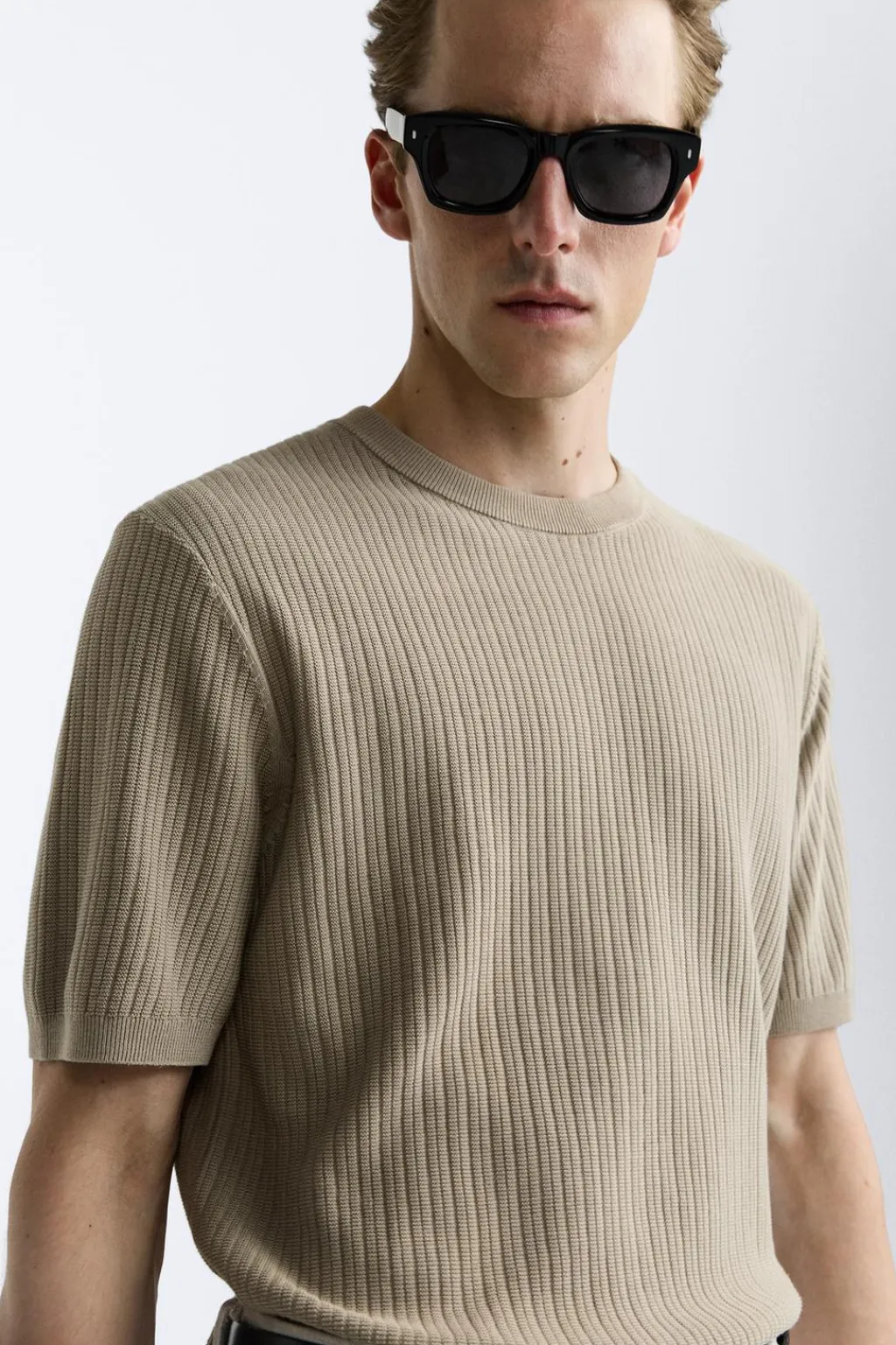 Camiseta de punto tejida en hilatura de algodón. Cuello redondo y manga corta. Acabados con rib.