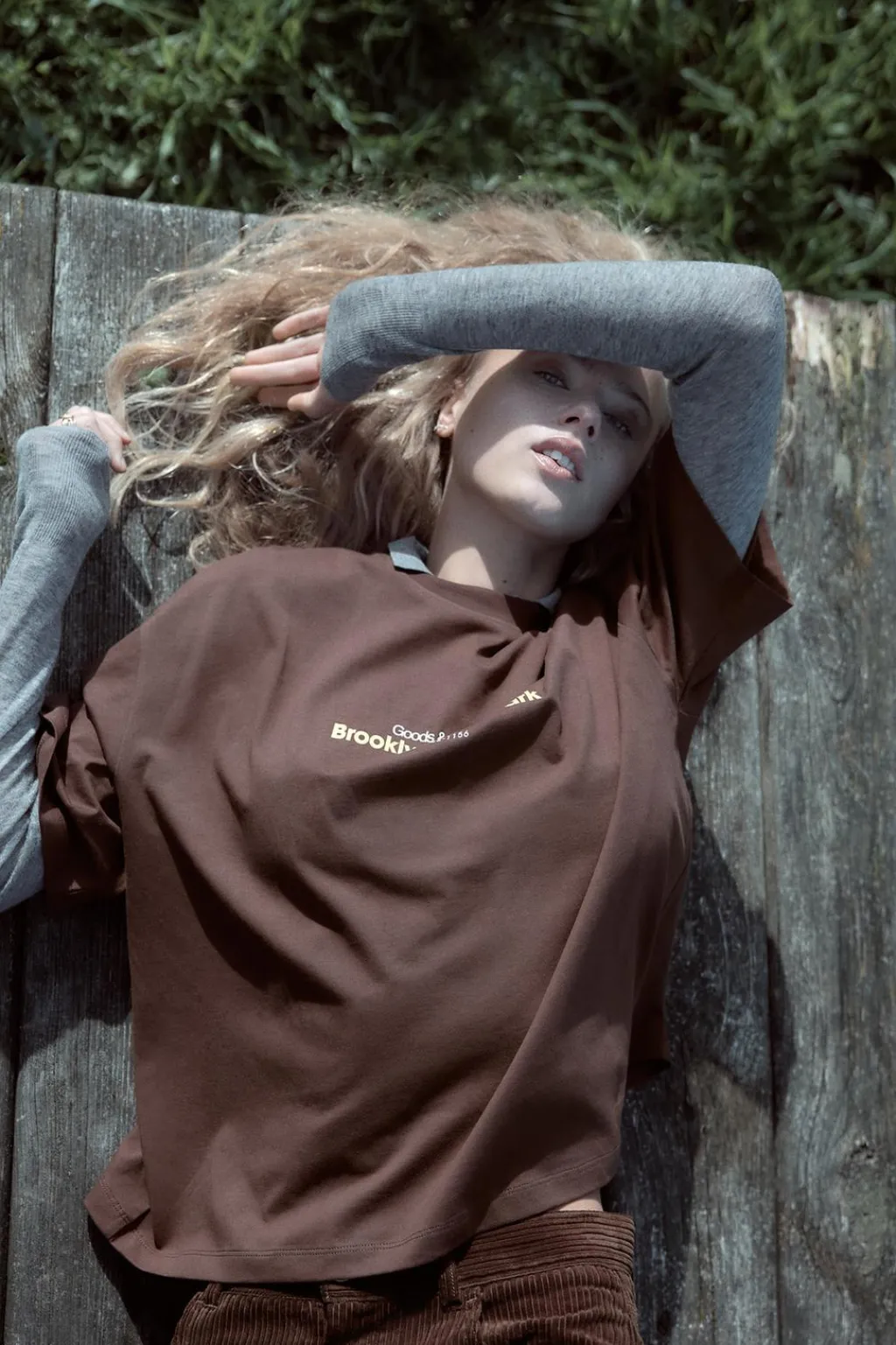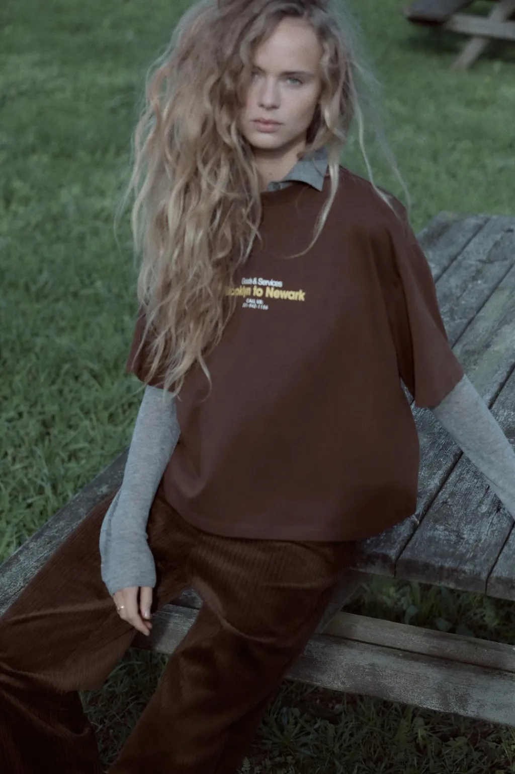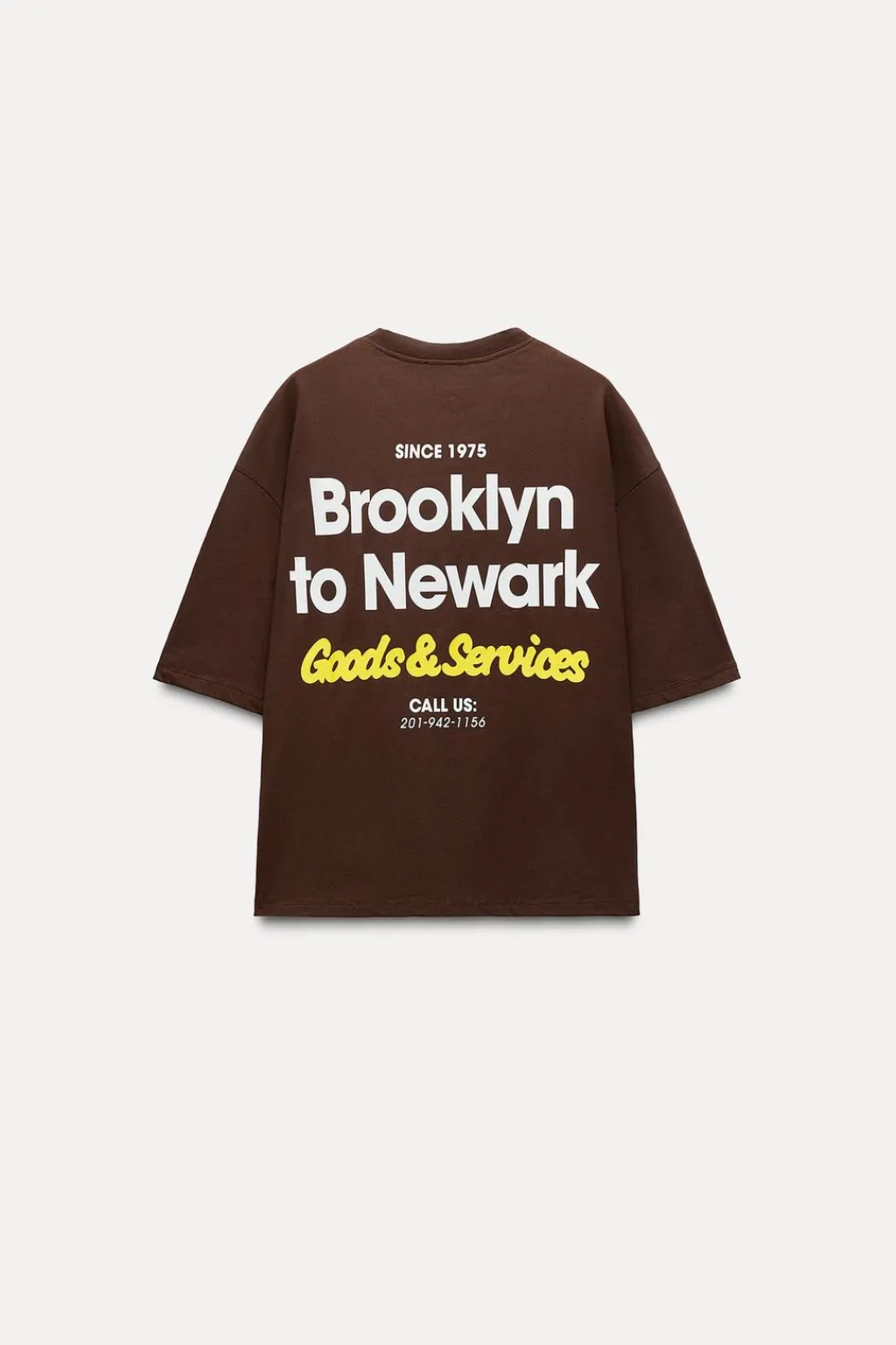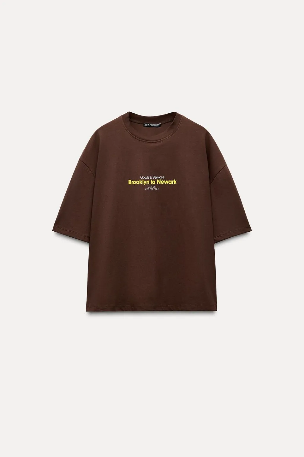 Camiseta de cuello redondo y manga corta con hombro caído. Detalle de texto combinado a contraste.