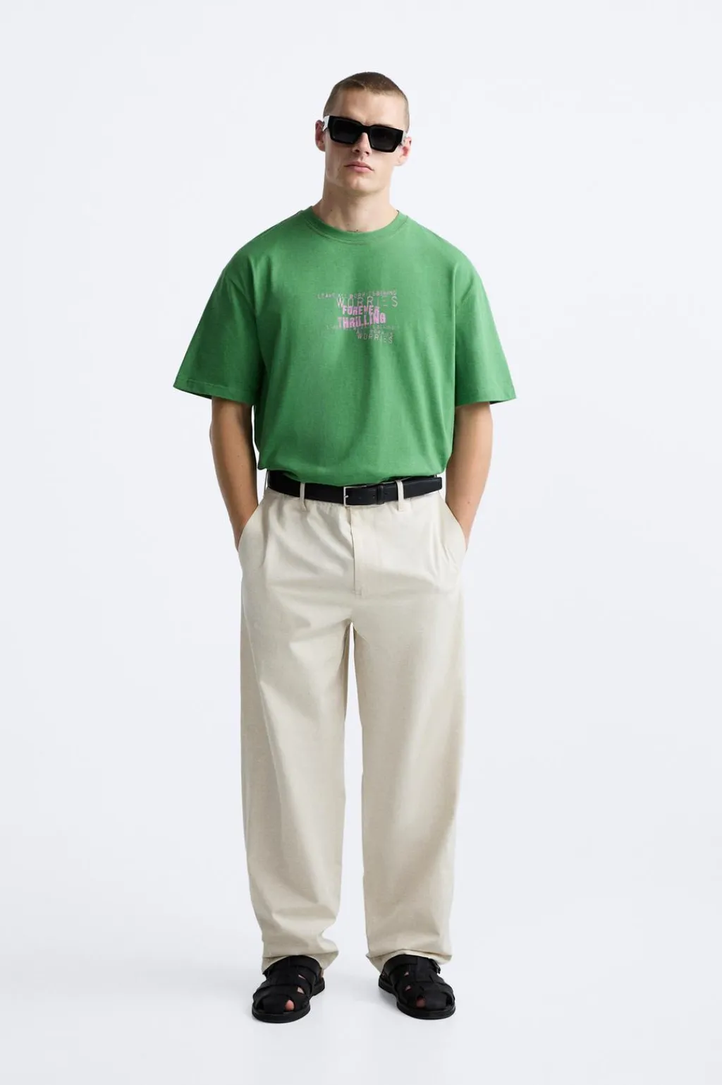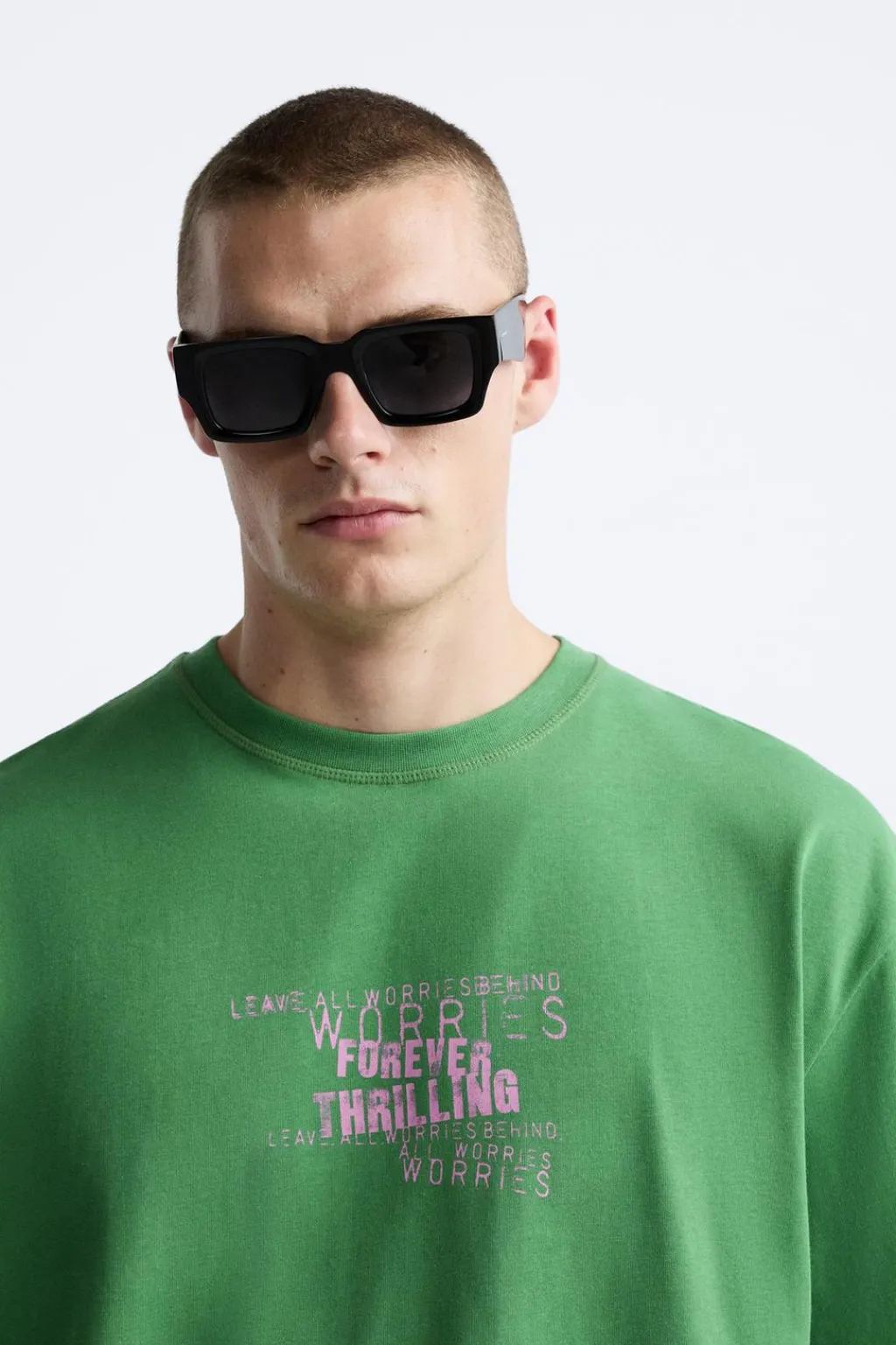 Camiseta relaxed fit. Cuello redondo y manga corta. Estampación de textos combinados a contraste en delantero y espalda
