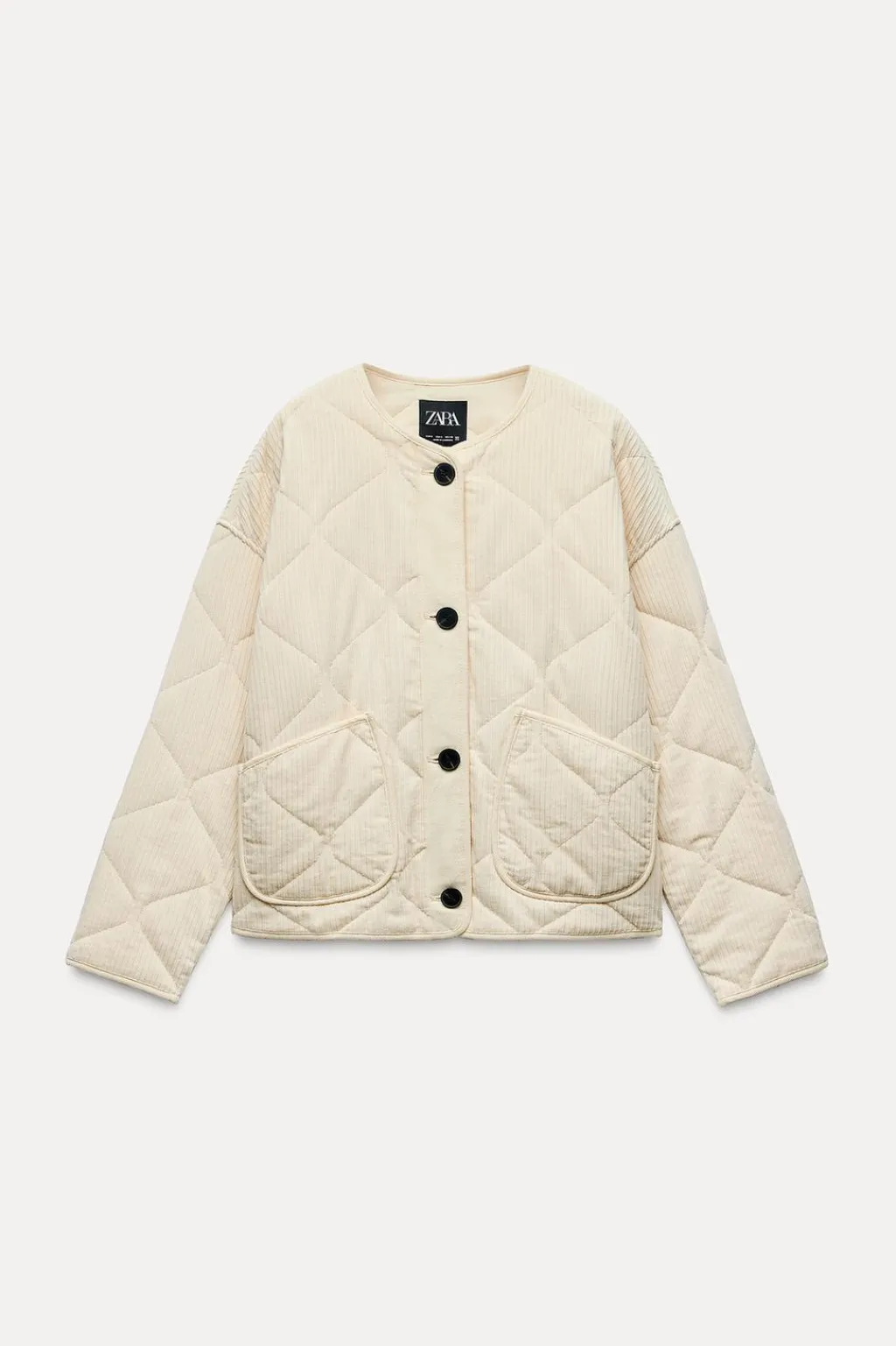 Cazadora de cuello redondo y manga larga. Bolsillos delanteros de plastrón. Cierre frontal con botones.