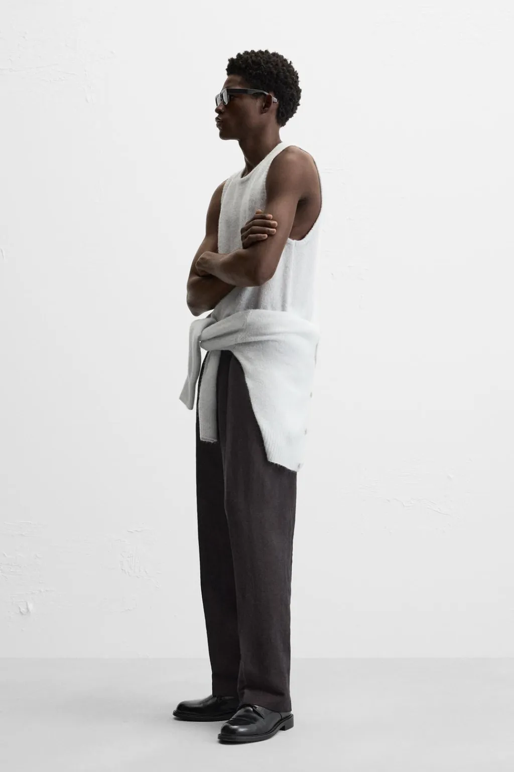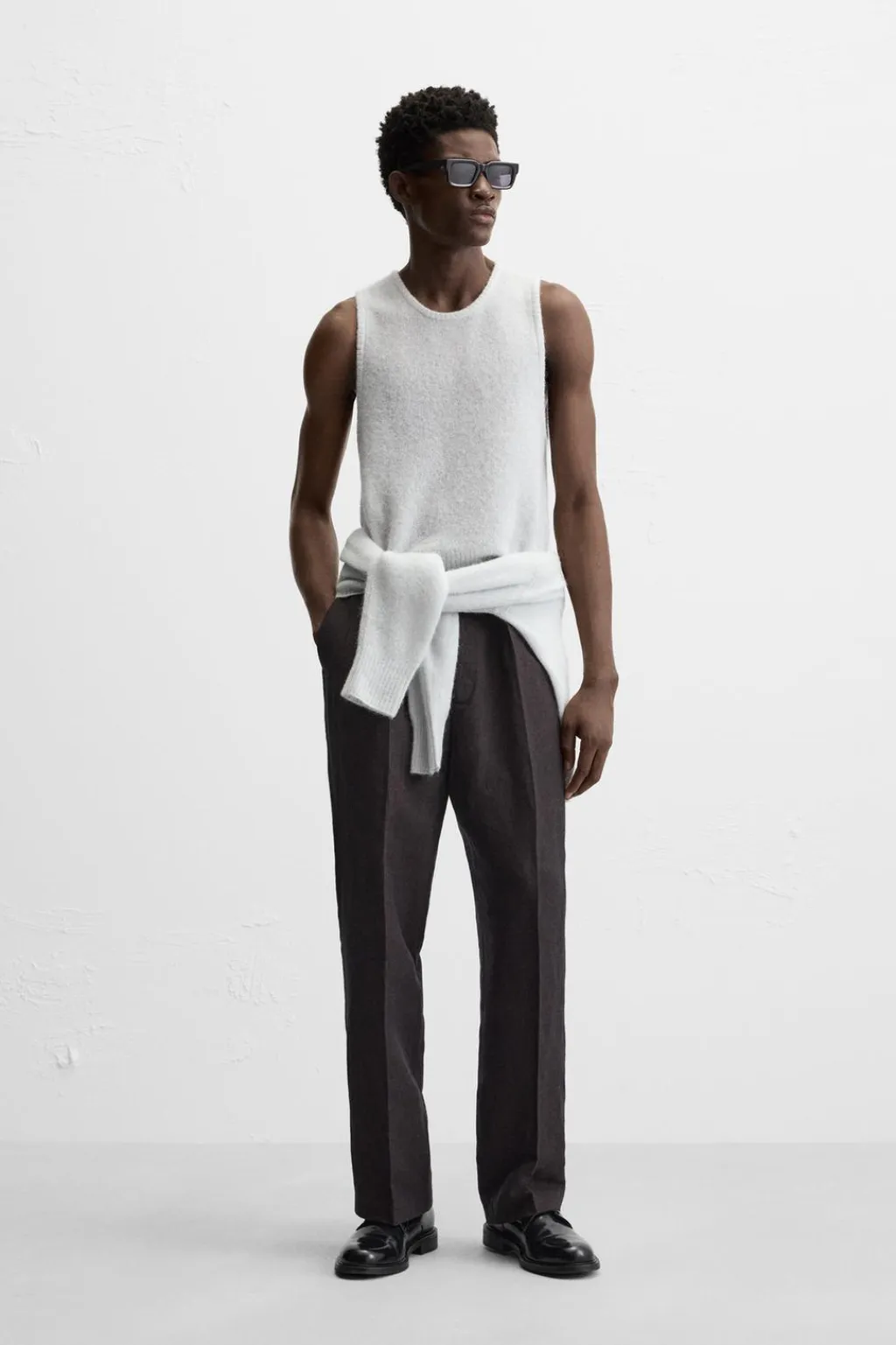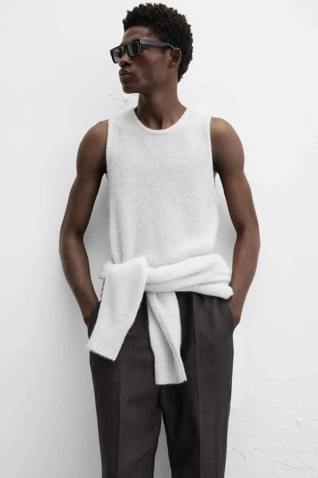 Chaleco regular fit tejido en hilatura ligera con lana. Cuello redondo y manga sisa. Acabados en rib.