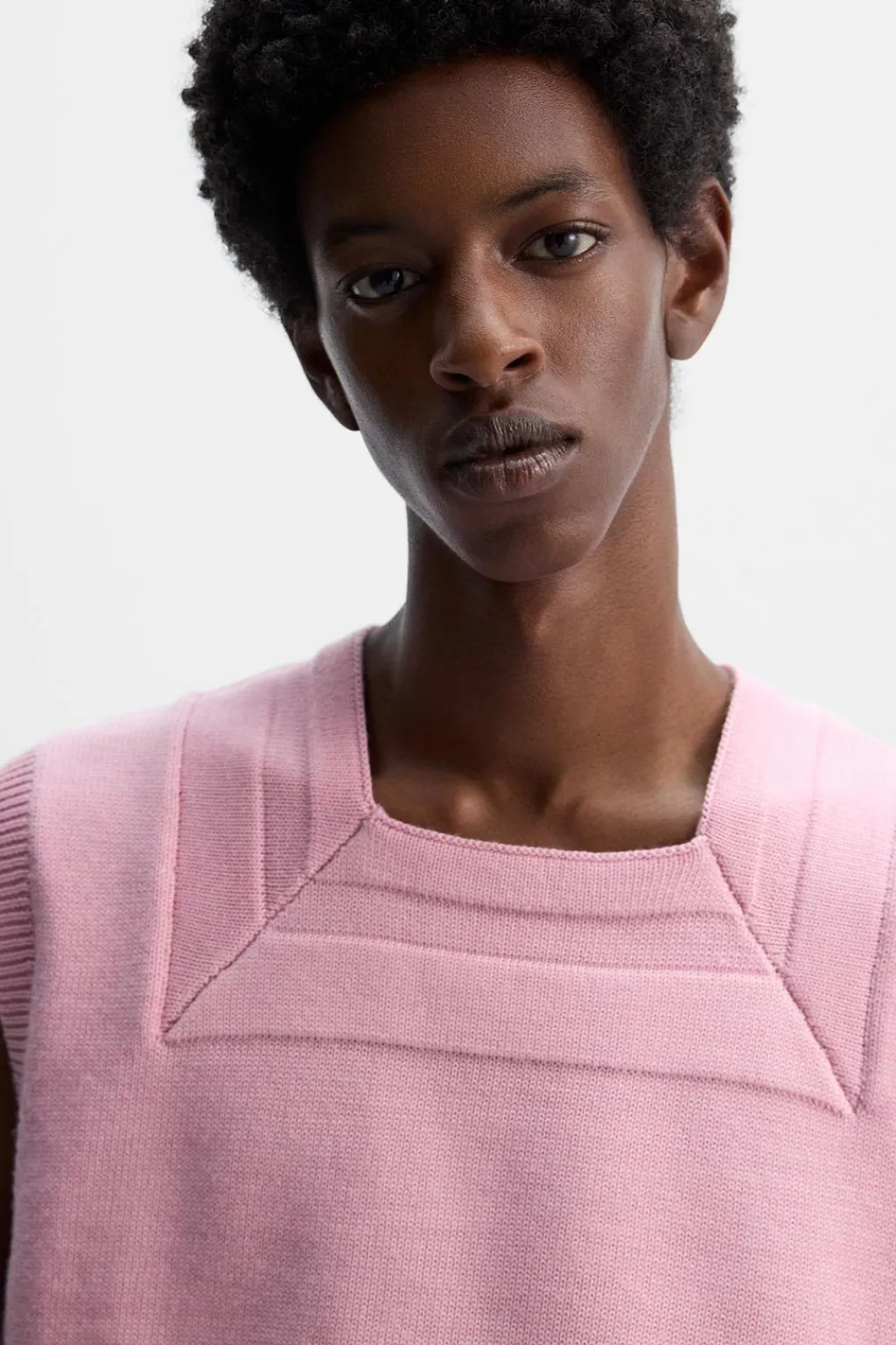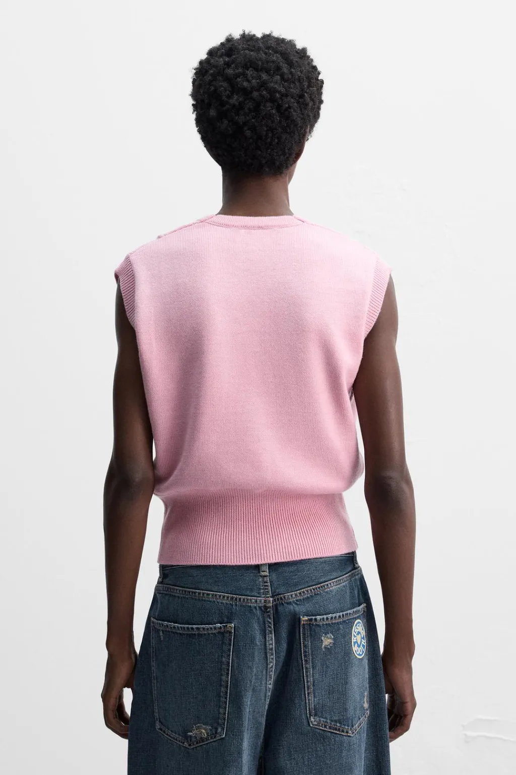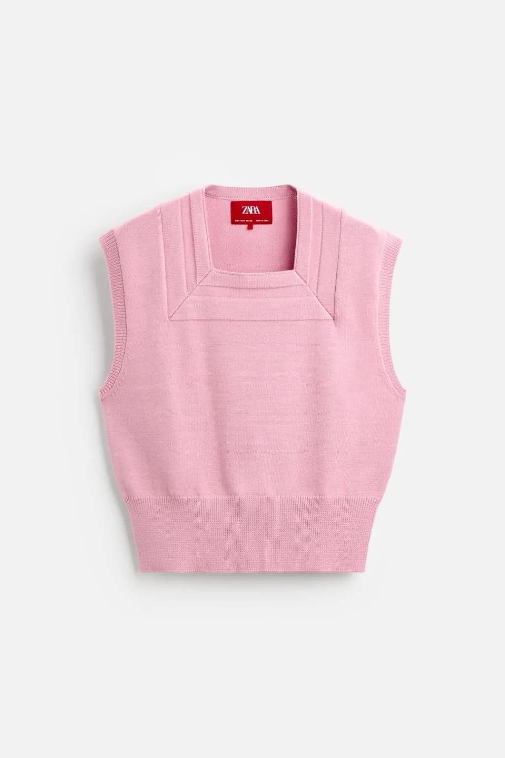 Chaleco de punto cropped fit tejido en hilatura con lana. Cuello cuadrado y manga sisa. Acabados en rib.