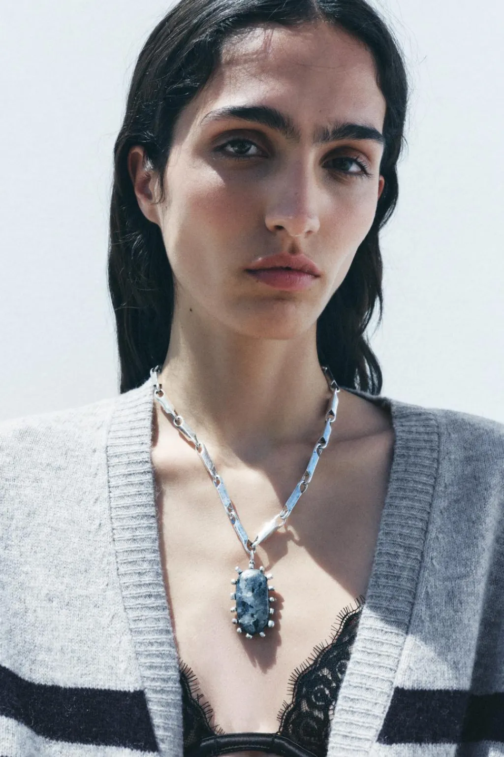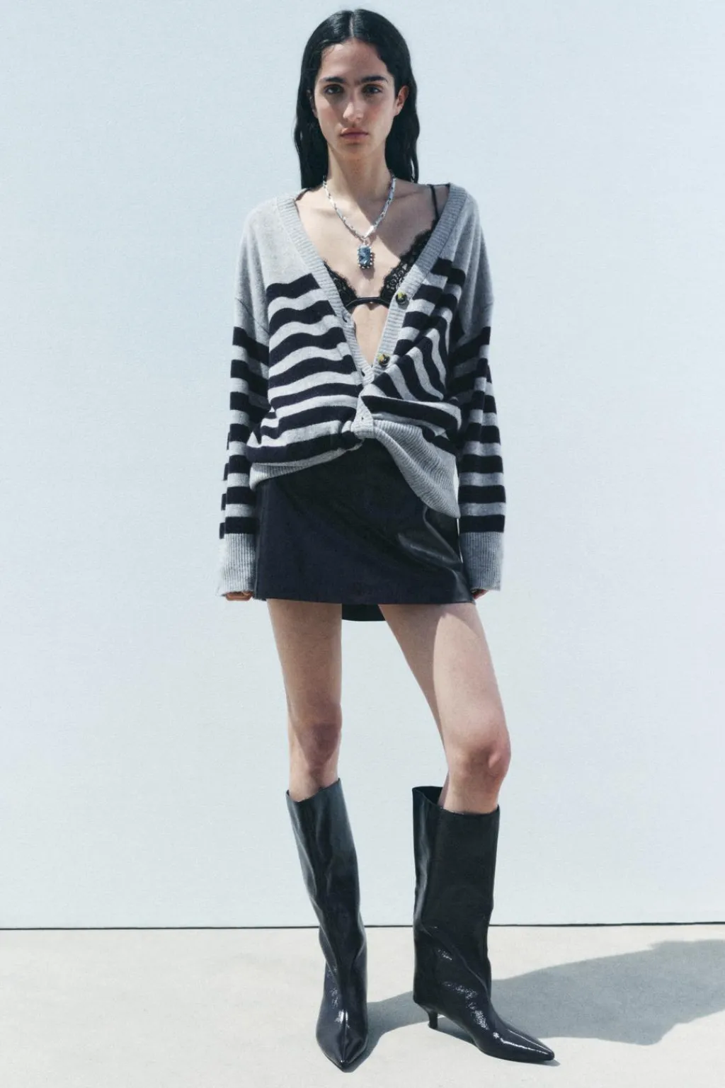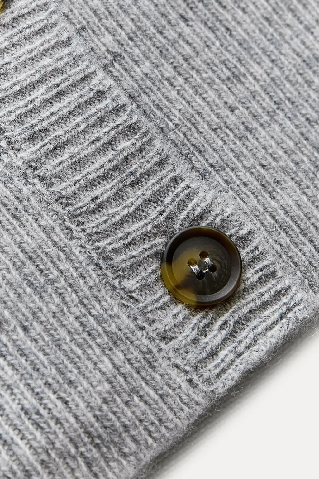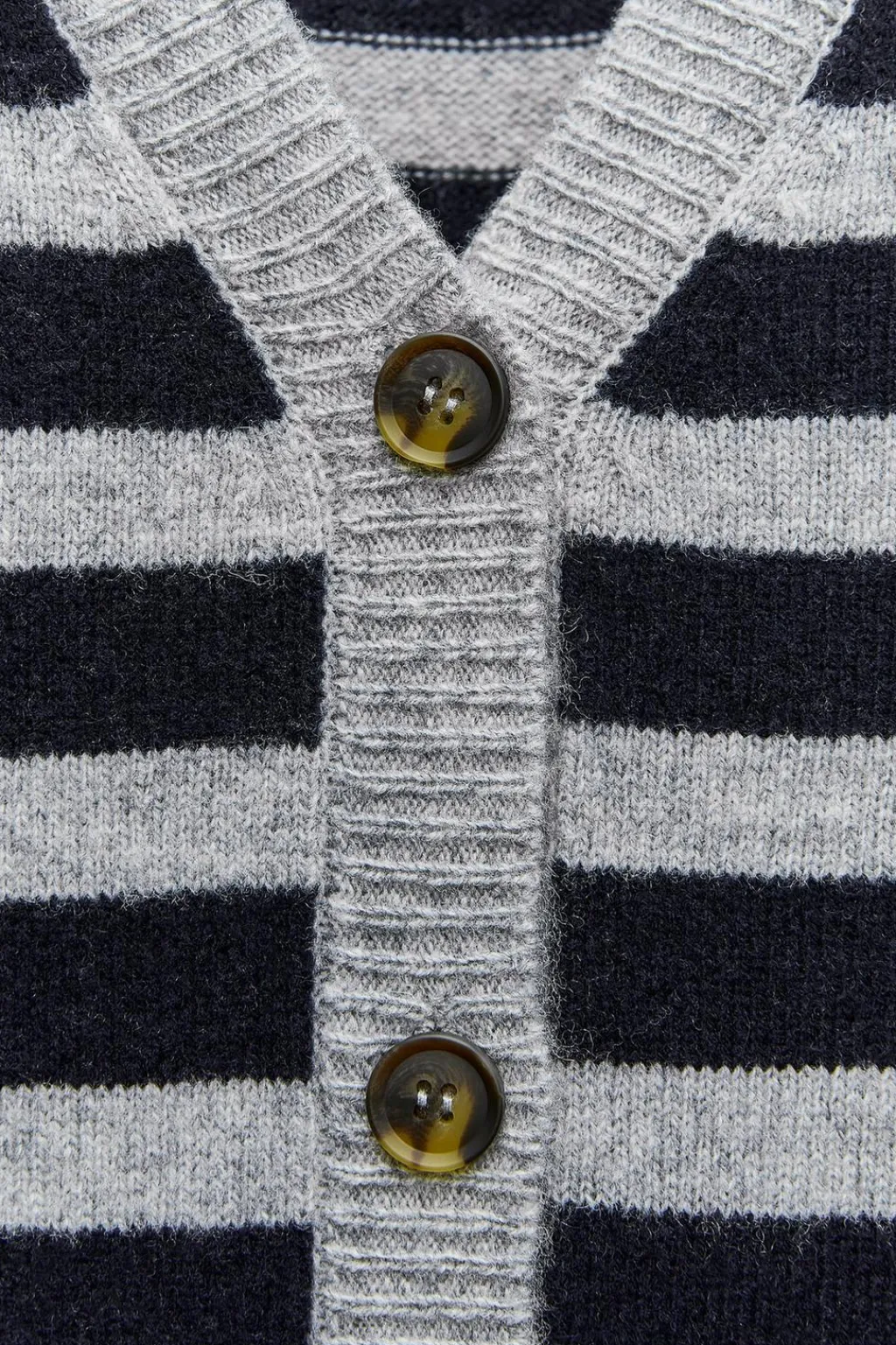 Chaqueta confeccionada en 100% lana. Escote pico y manga larga. Acabados en rib. Cierre frontal con botones.