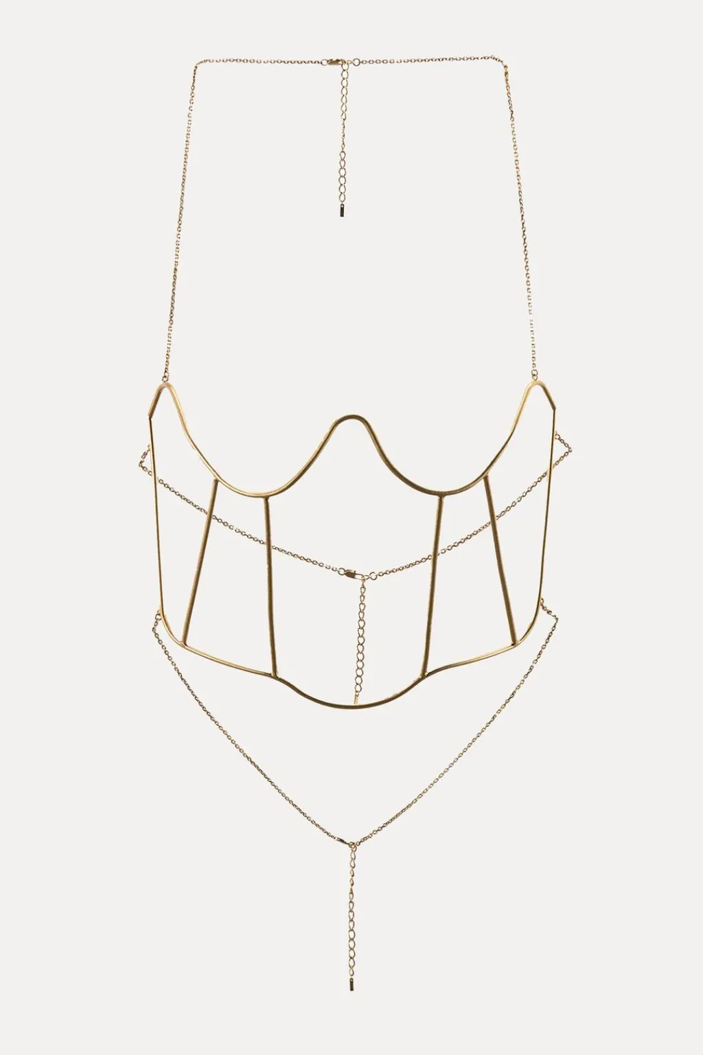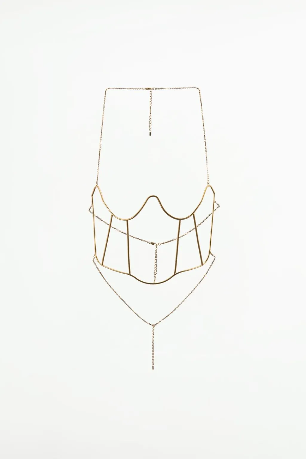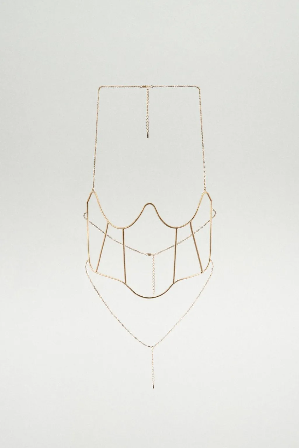Corsé rígido metálico. Cierre con cadena de eslabones y mosquetones.