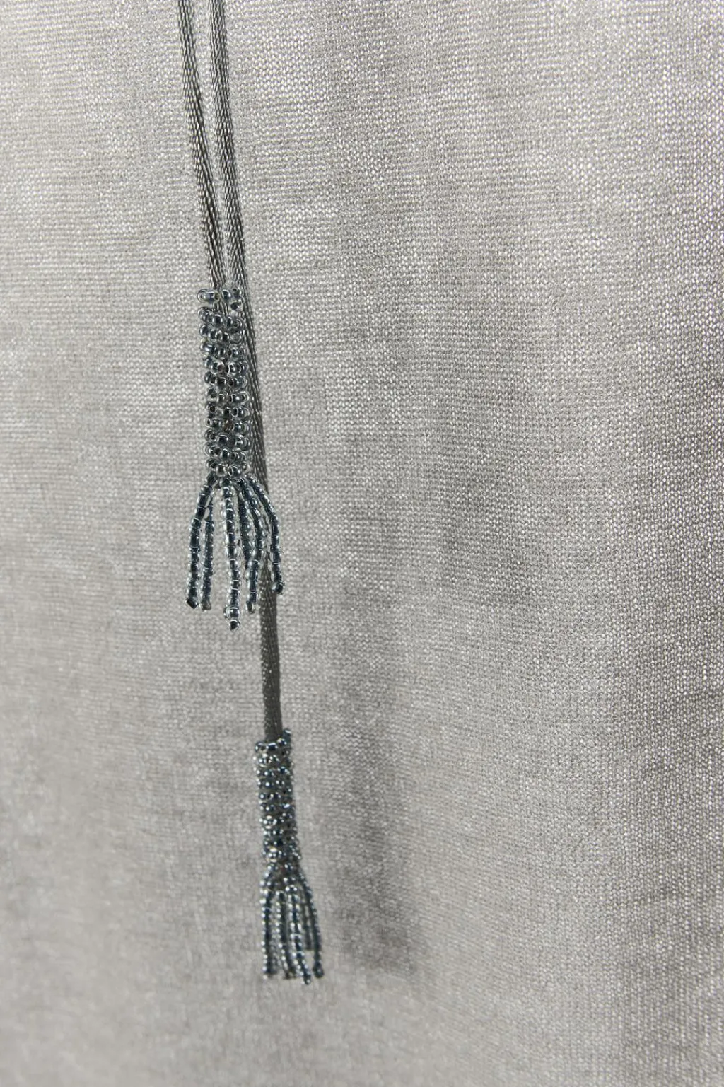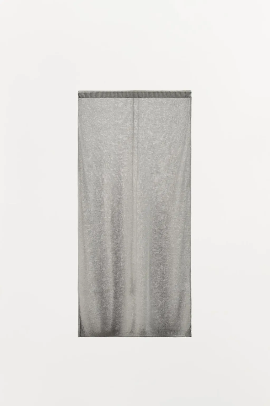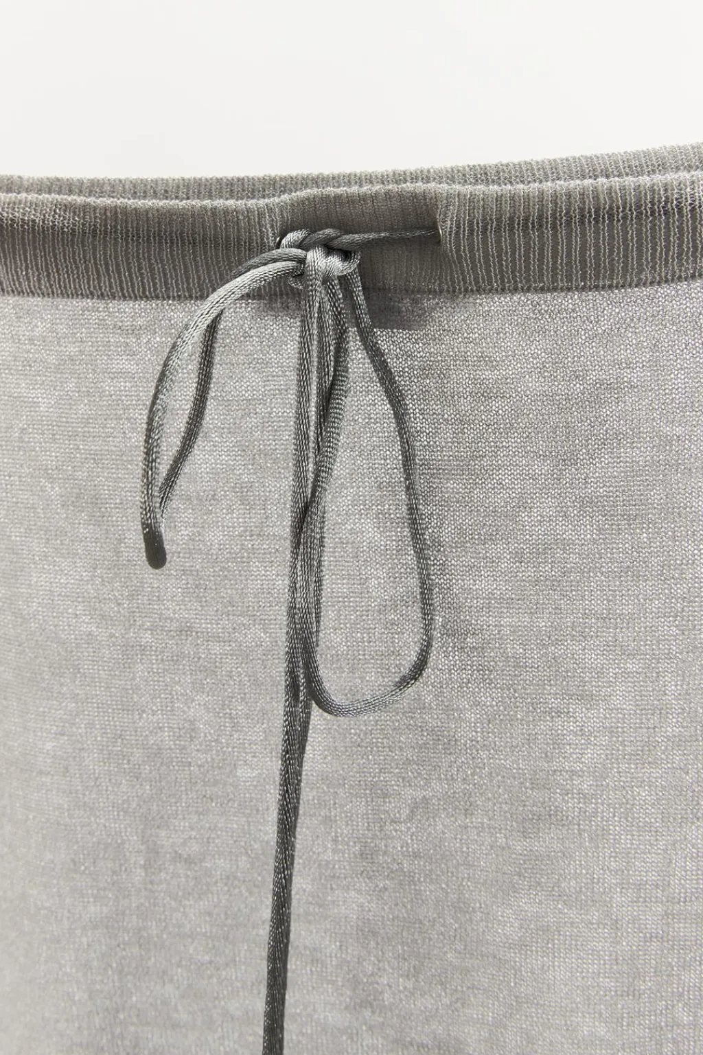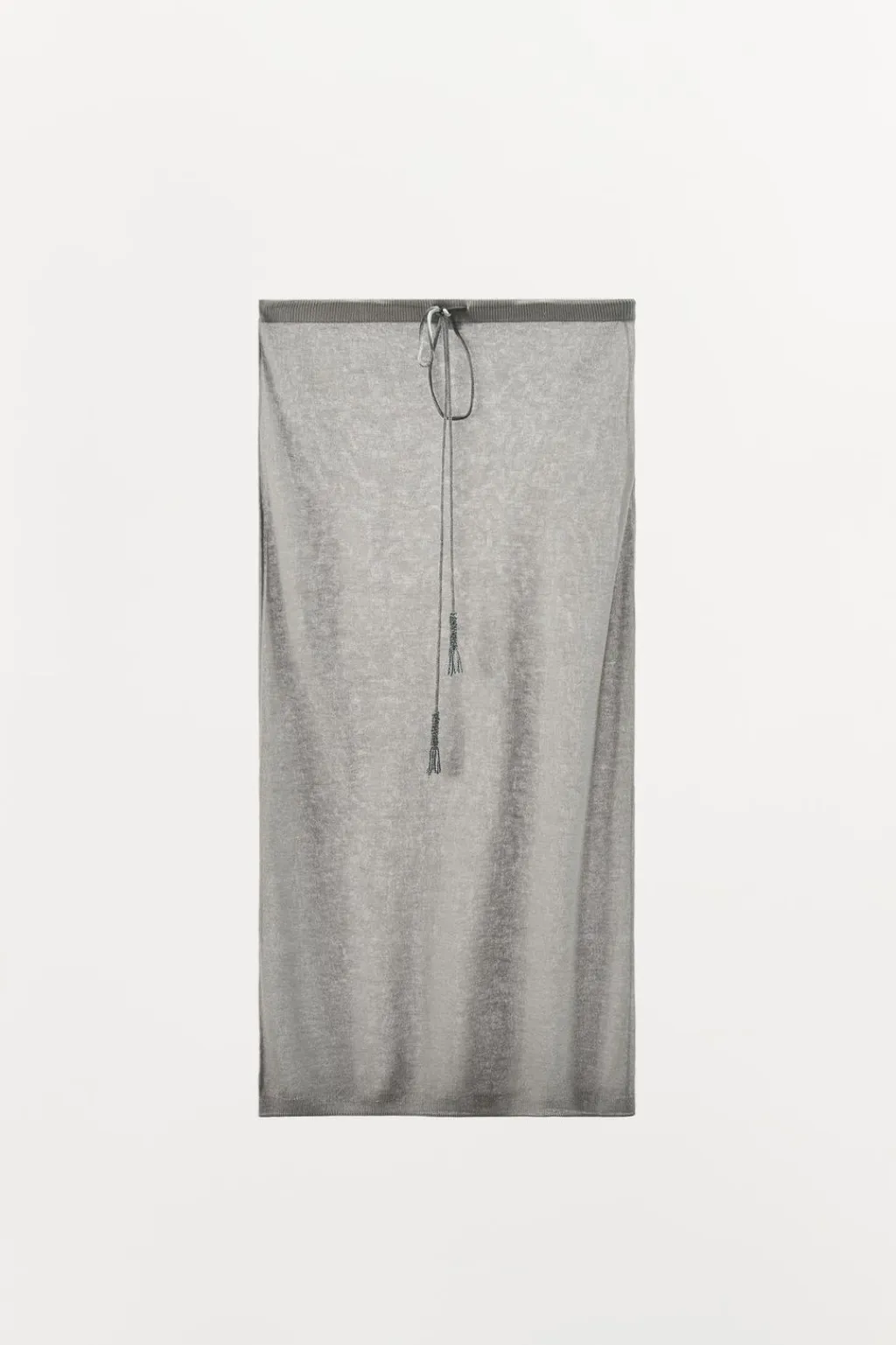 Falda midi semitransparente confeccionada en punto fino con hilo metalizado. Cintura elástica ajustable con lazada.