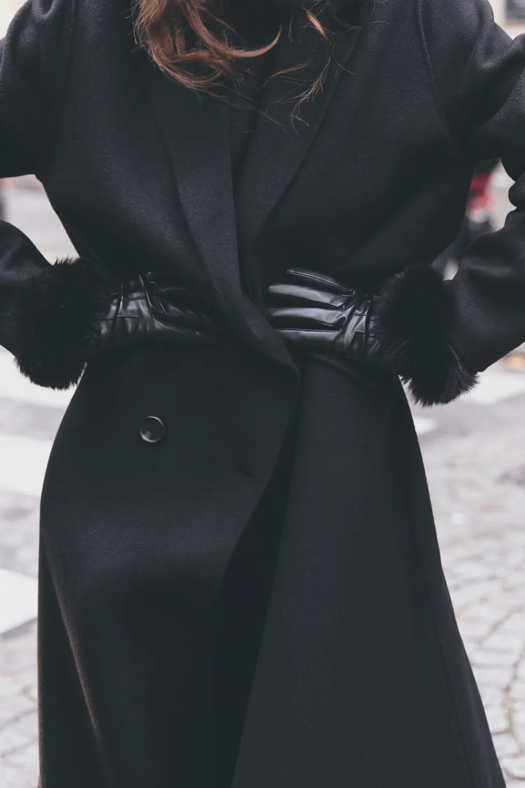 Guantes cortos con acabados en aplicación efecto pelo combinados a tono.