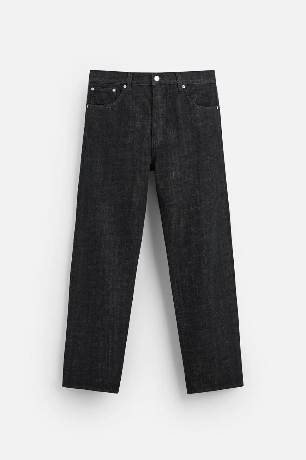 Jeans straight fit. Cinco bolsillos. Cierre frontal con cremallera y botón.
