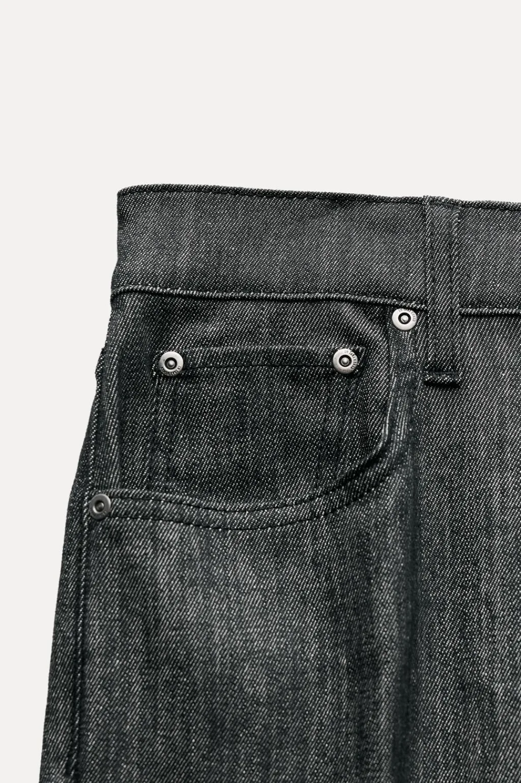 Jeans de tiro alto y cintura con trabillas. Cinco bolsillos. Cierre frontal con cremallera y botón.