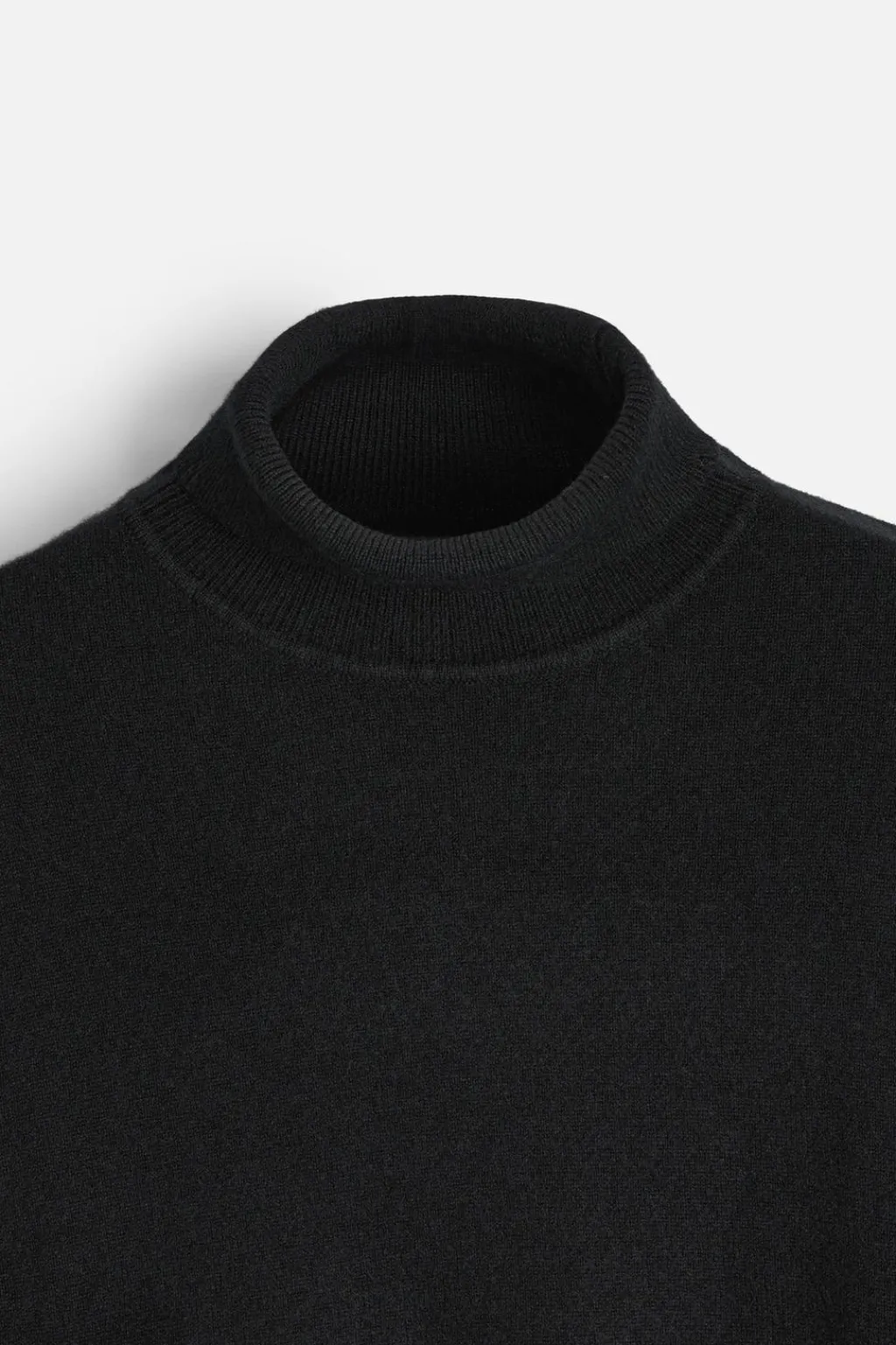 Jersey regular fit tejido en hilatura de lana cashmere. Cuello subido y manga larga. Acabados en rib.