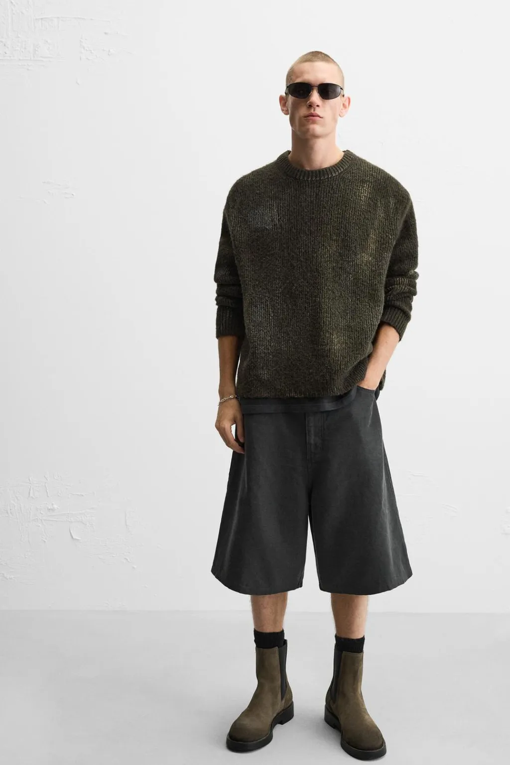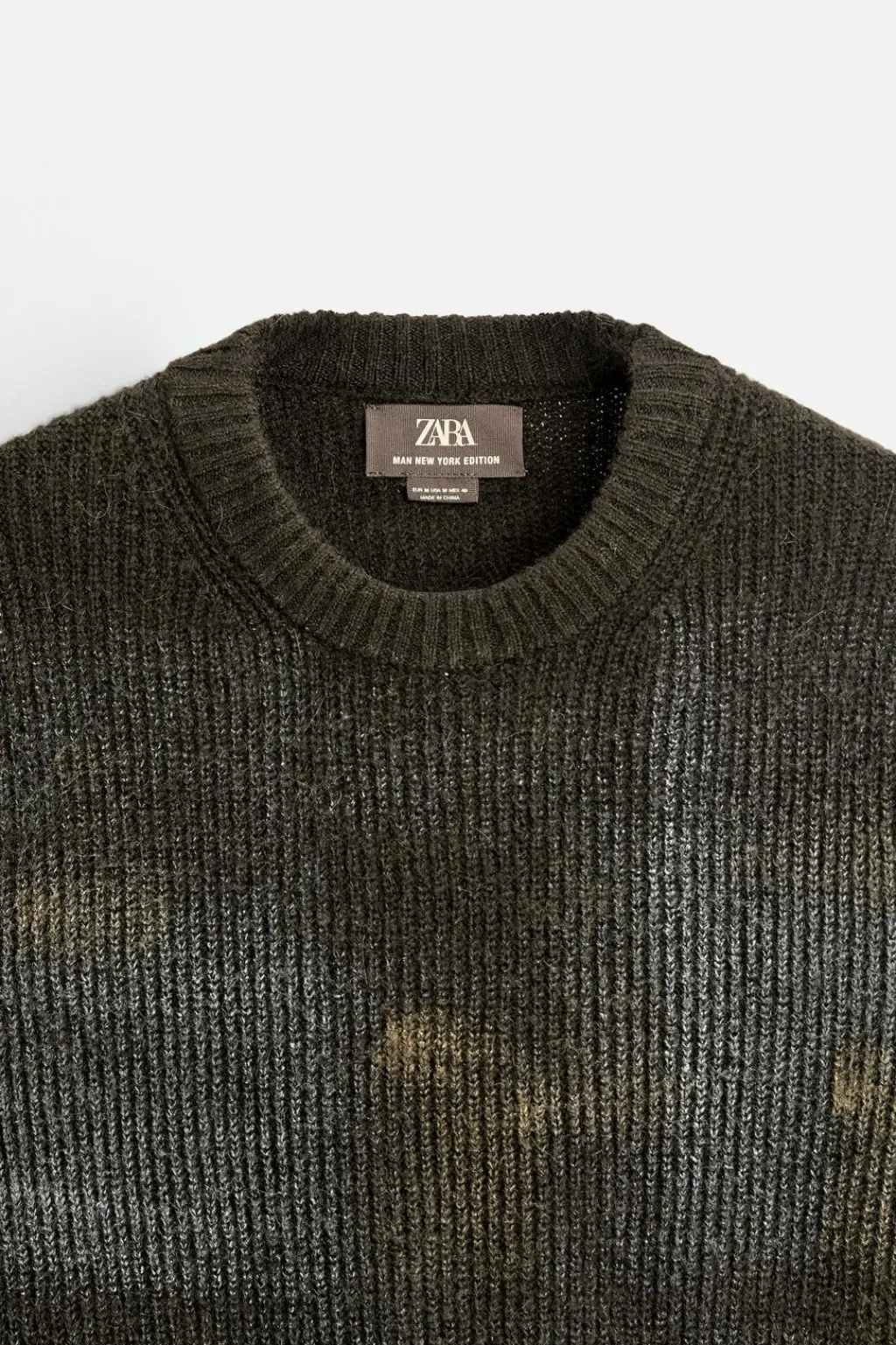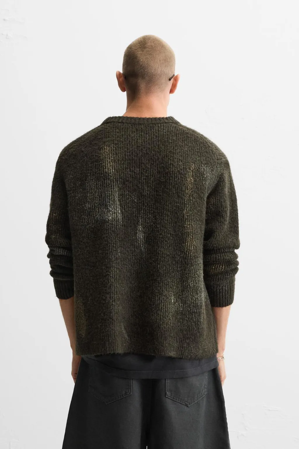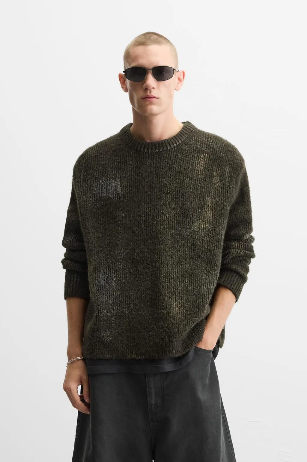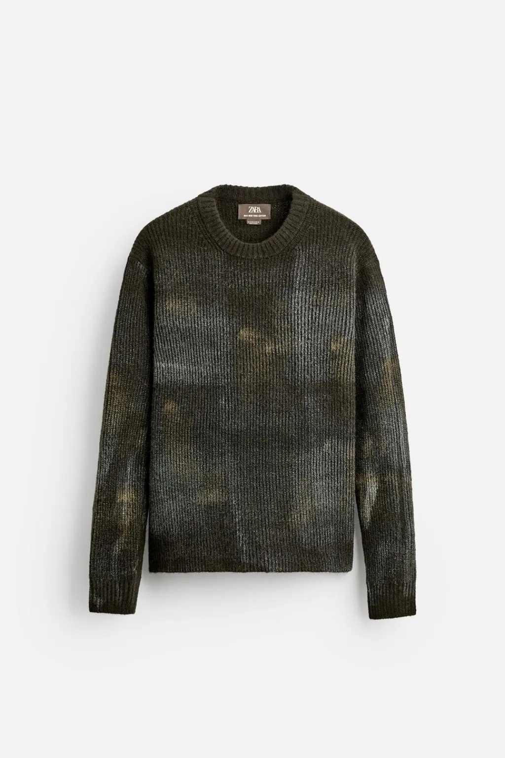 Jersey regular fit tejido en hilatura con textura. Cuello redondo y manga larga. Estampación combinada a contraste en toda la prenda. Acabados en rib.