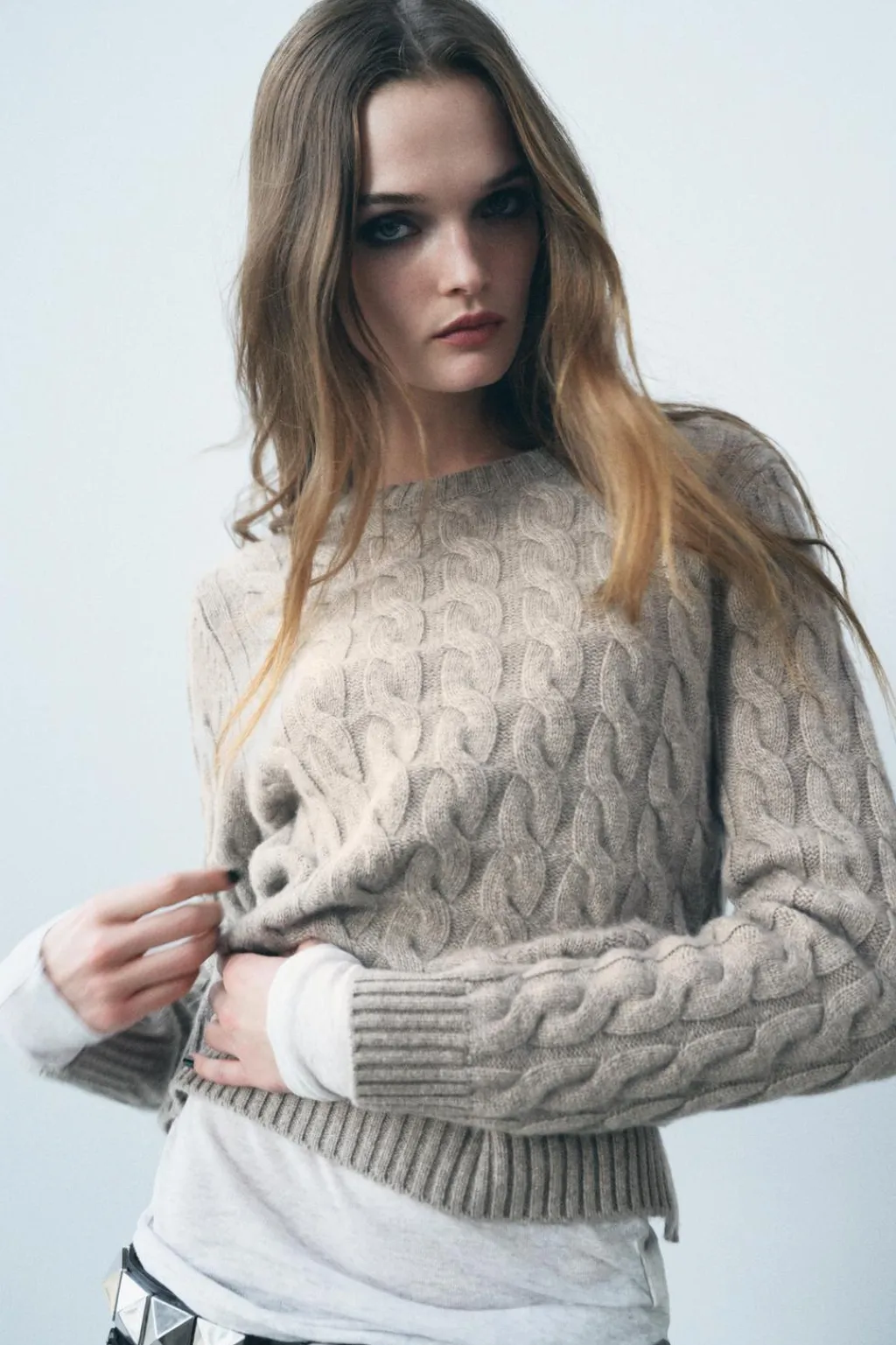 Jersey confeccionado en 100% cashmere. Cuello redondo y manga larga. Acabados en rib.