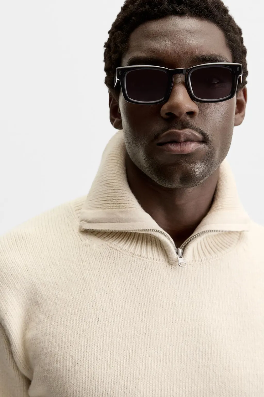 Jersey relaxed fit. Cuello perkins con cierre frontal de cremallera. Manga larga. Acabados en rib.