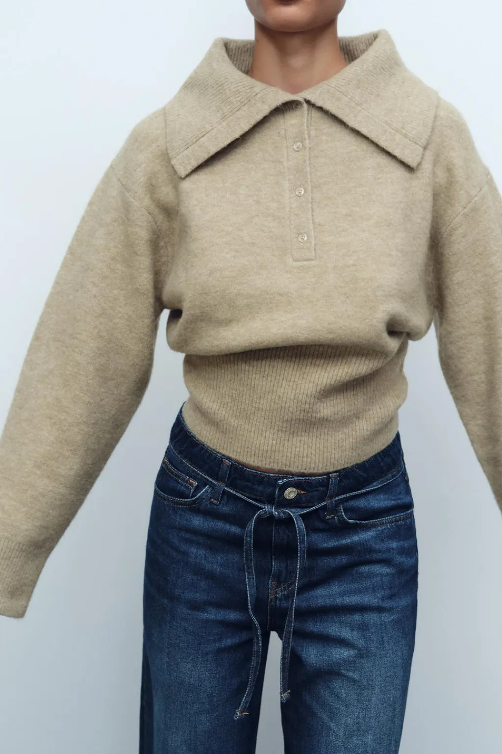 Jersey de cuello con solapa amplia y manga larga. Botones delanteros.