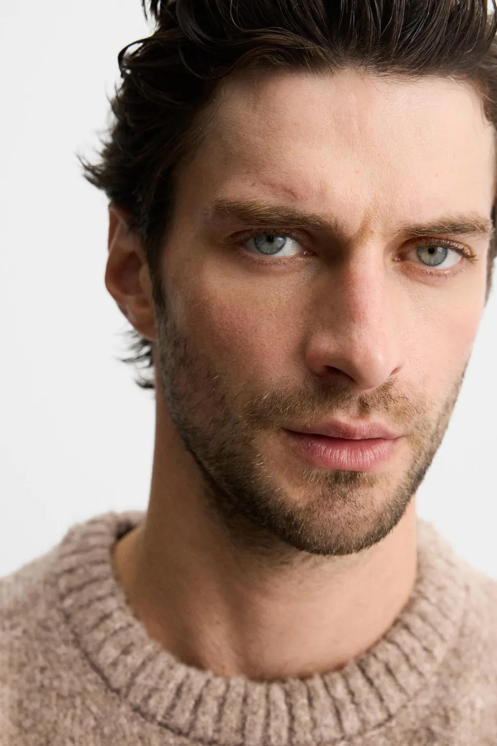 Jersey relaxed fit tejido en hilatura con textura bouclé. Cuello redondo y manga larga. Acabados en rib.