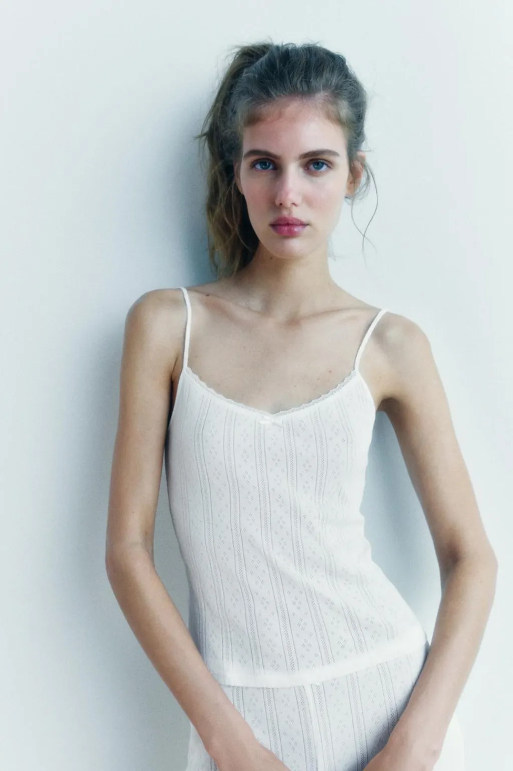Leggings confeccionado en hilatura de algodón 100%. Tiro medio y cintura elástica. Detalle aplicación de lazo en delantero combinado a tono.