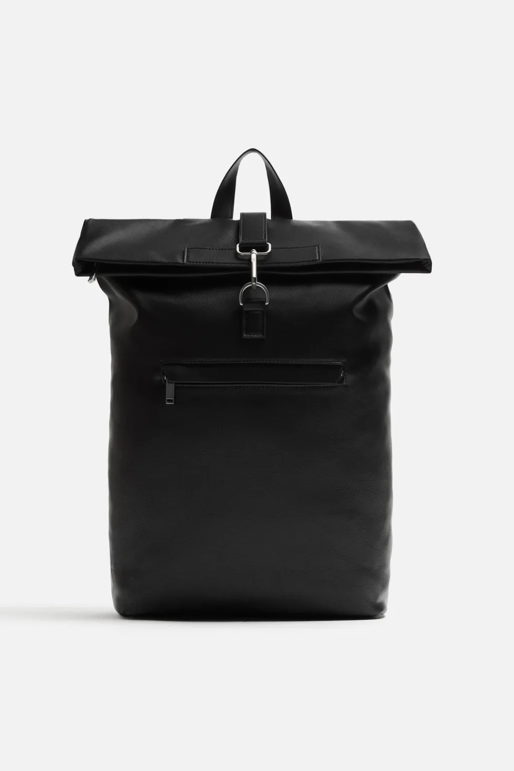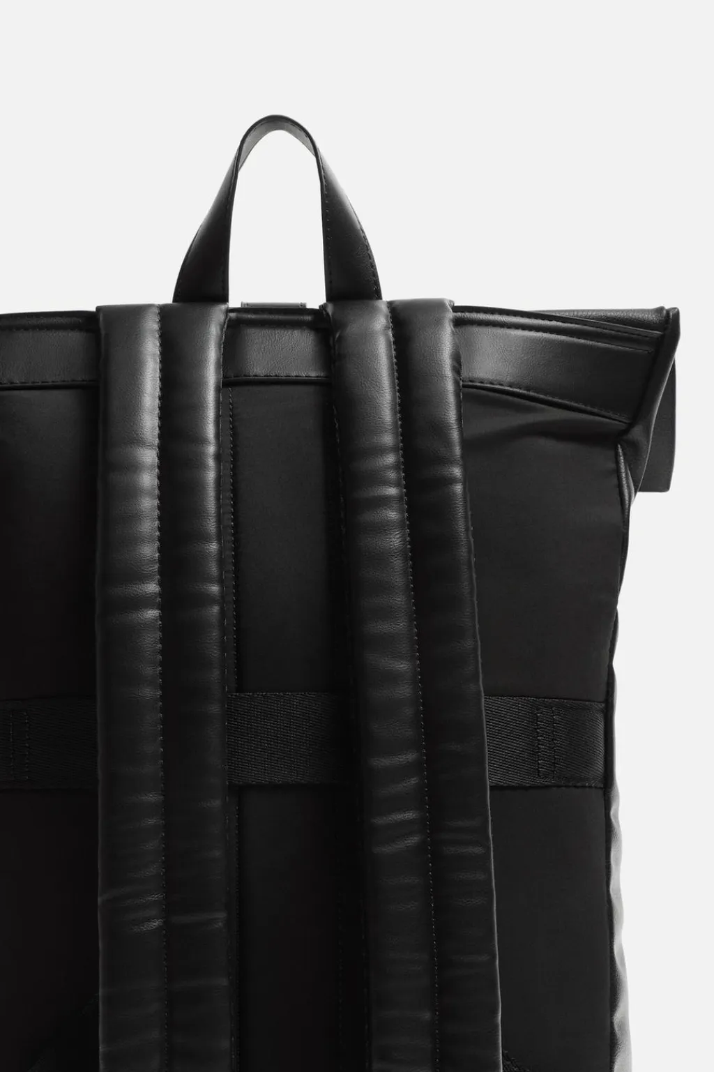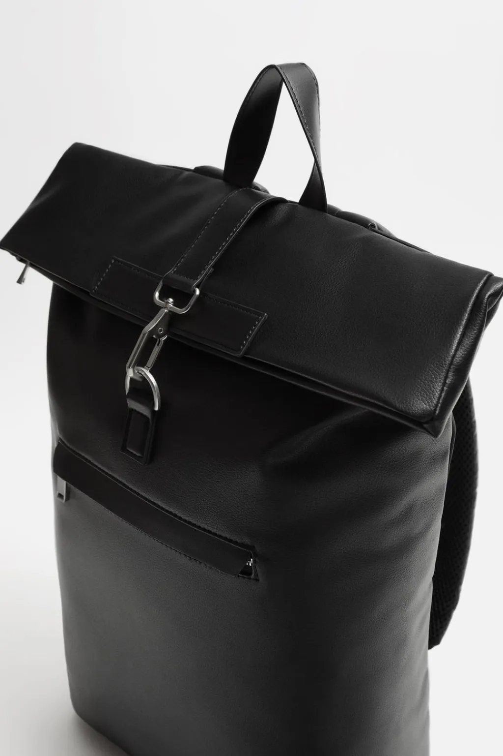 Mochila de acabado granulado. Construcción soft. El compartimento principal se cierra mediante cremallera, solapa enrollada y mosquetón metálico. En su interior dispone de un compartimento para dispositivos electrónicos de hasta 13 pulgadas y de un bolsillo con cierre mediante cremallera. Bolsillo pequeño con cremallera en la parte frontal. Respaldo acolchado con cinta para ajustar a equipaje. Dispone de un asa de mano y dos asas de hombro ajustables.