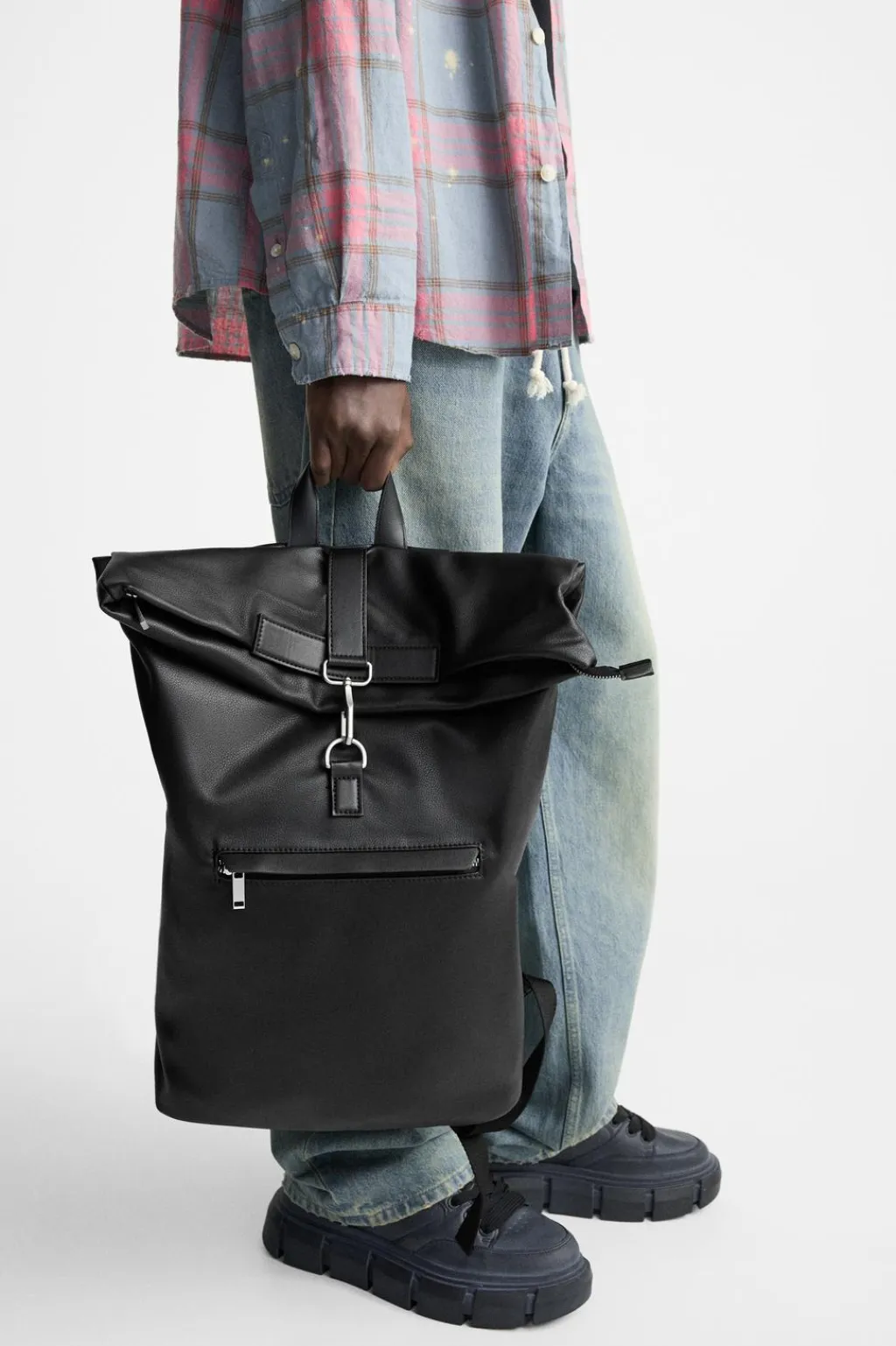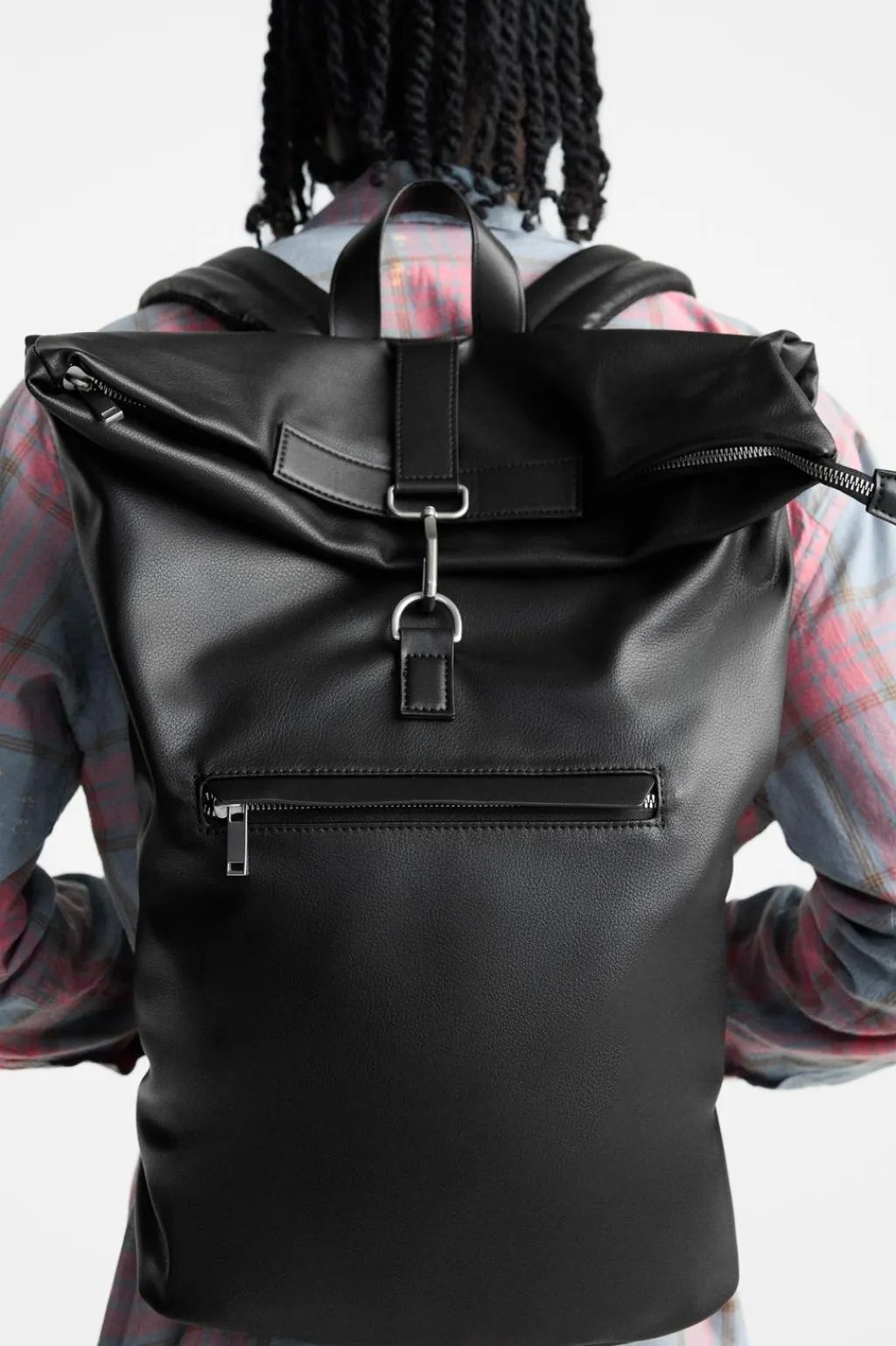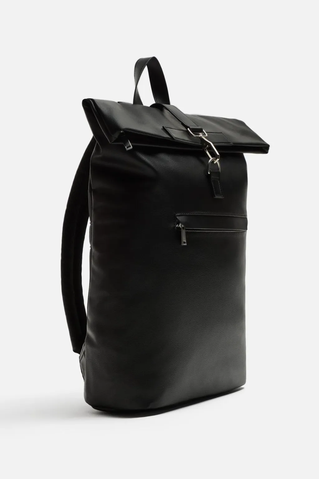 Mochila de acabado granulado. Construcción soft. El compartimento principal se cierra mediante cremallera, solapa enrollada y mosquetón metálico. En su interior dispone de un compartimento para dispositivos electrónicos de hasta 13 pulgadas y de un bolsillo con cierre mediante cremallera. Bolsillo pequeño con cremallera en la parte frontal. Respaldo acolchado con cinta para ajustar a equipaje. Dispone de un asa de mano y dos asas de hombro ajustables.