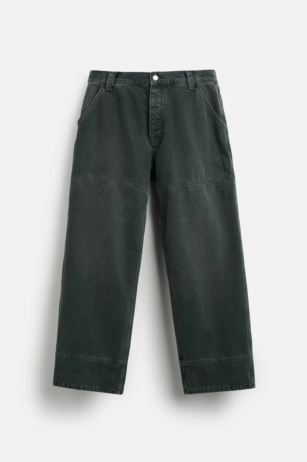 Pantalón baggy fit. Bolsillos frontales y detalle de bolsillos traseros de plastrón. Efecto lavado. Cierre frontal con cremallera y botón.