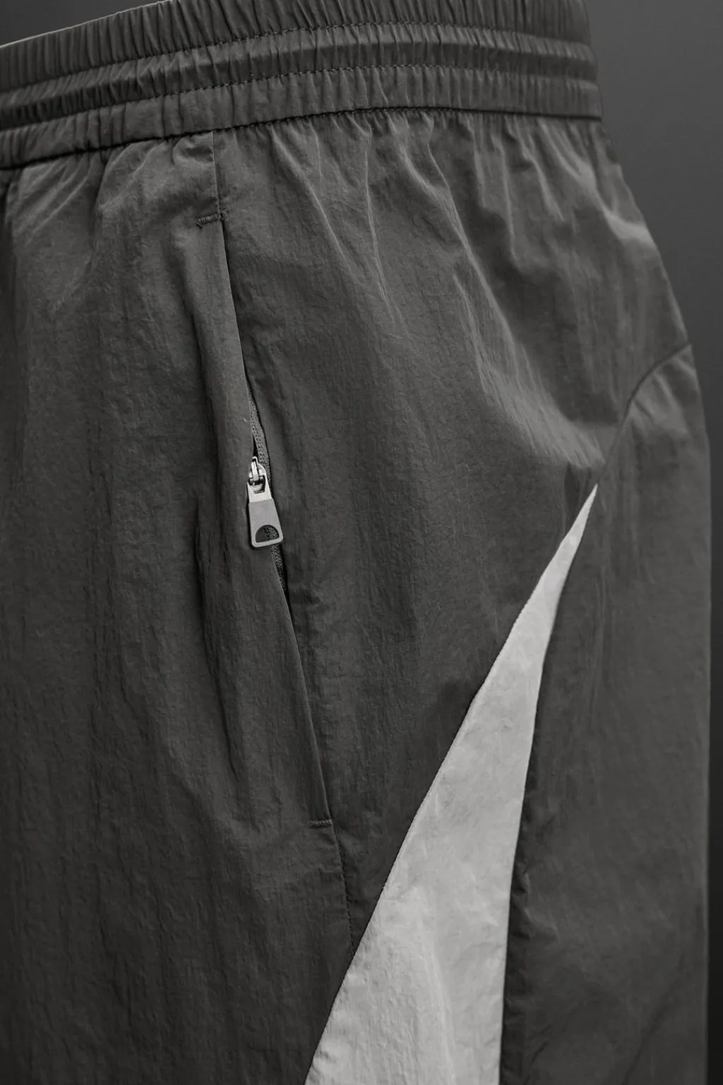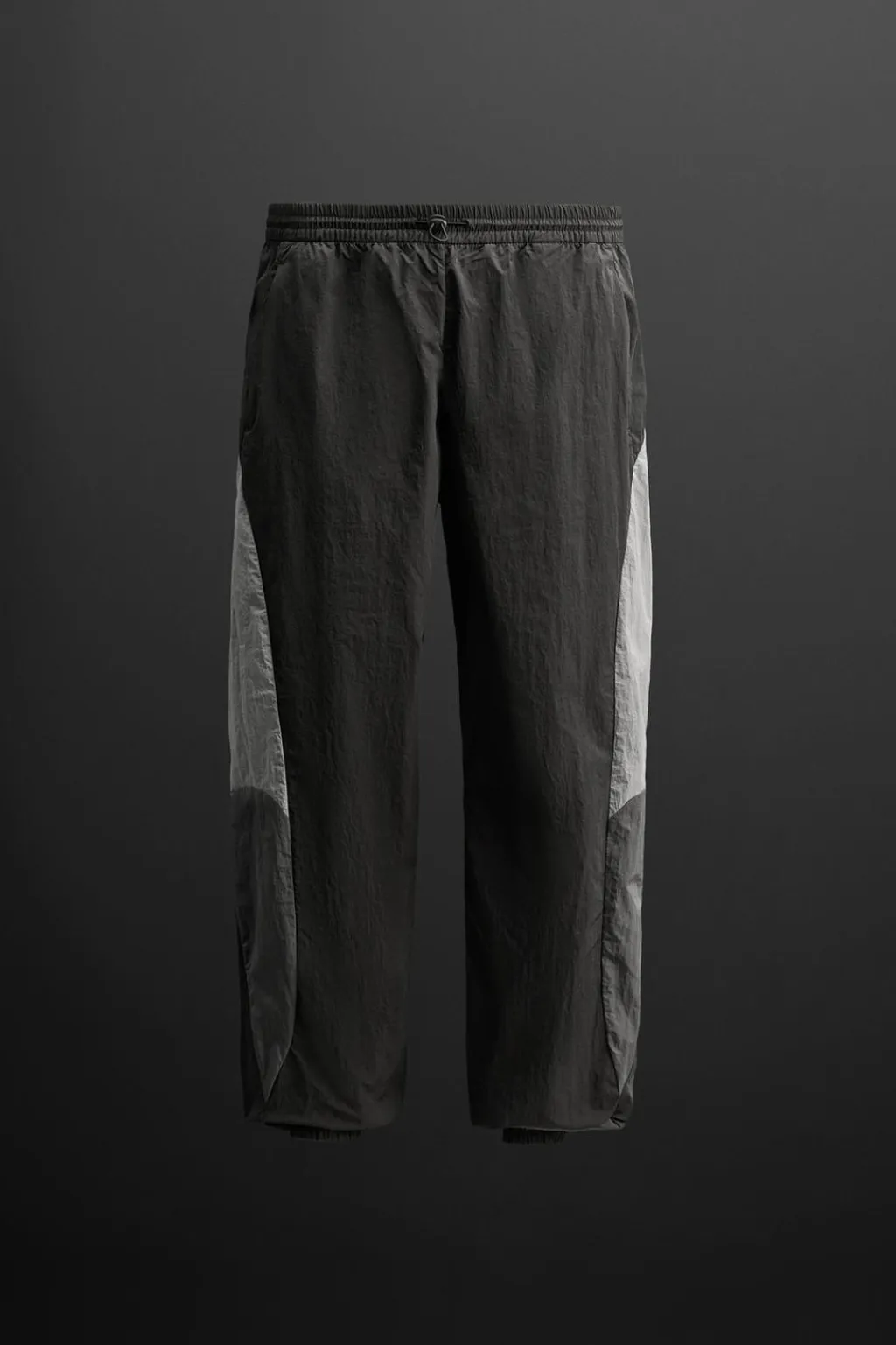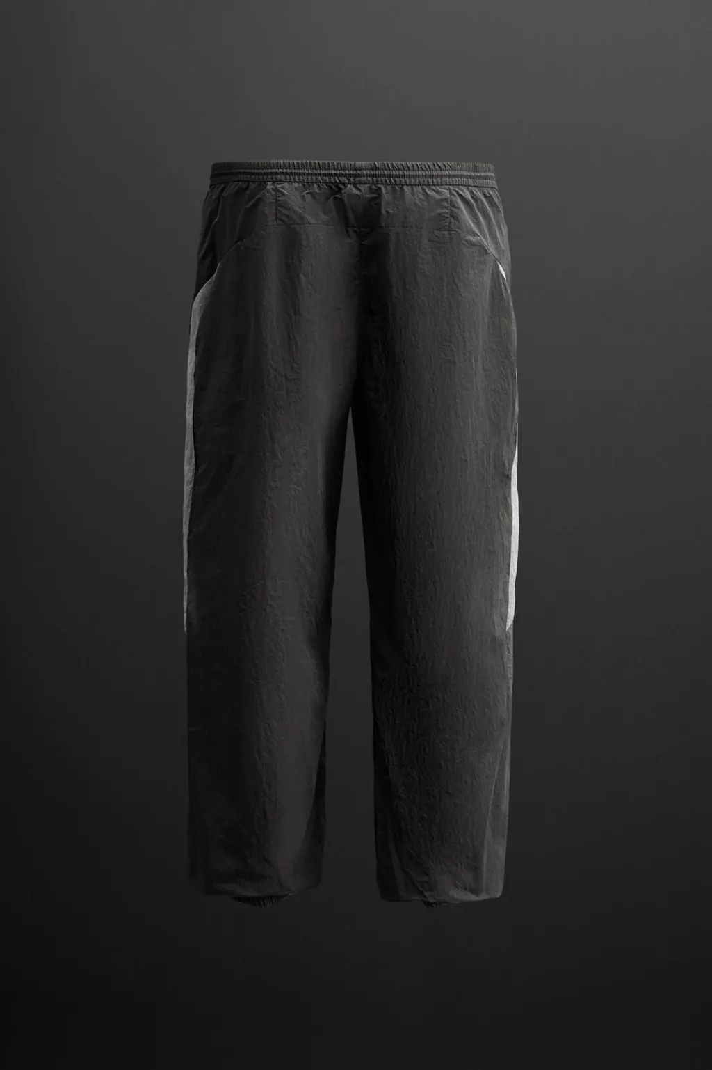 Pantalón relaxed fit confeccionado confeccionada en tejido técnico ligero. Cintura elástica ajustable con cordón. Bolsillos laterales con cierre de cremallera. Bajo acabado en puño con elástico.