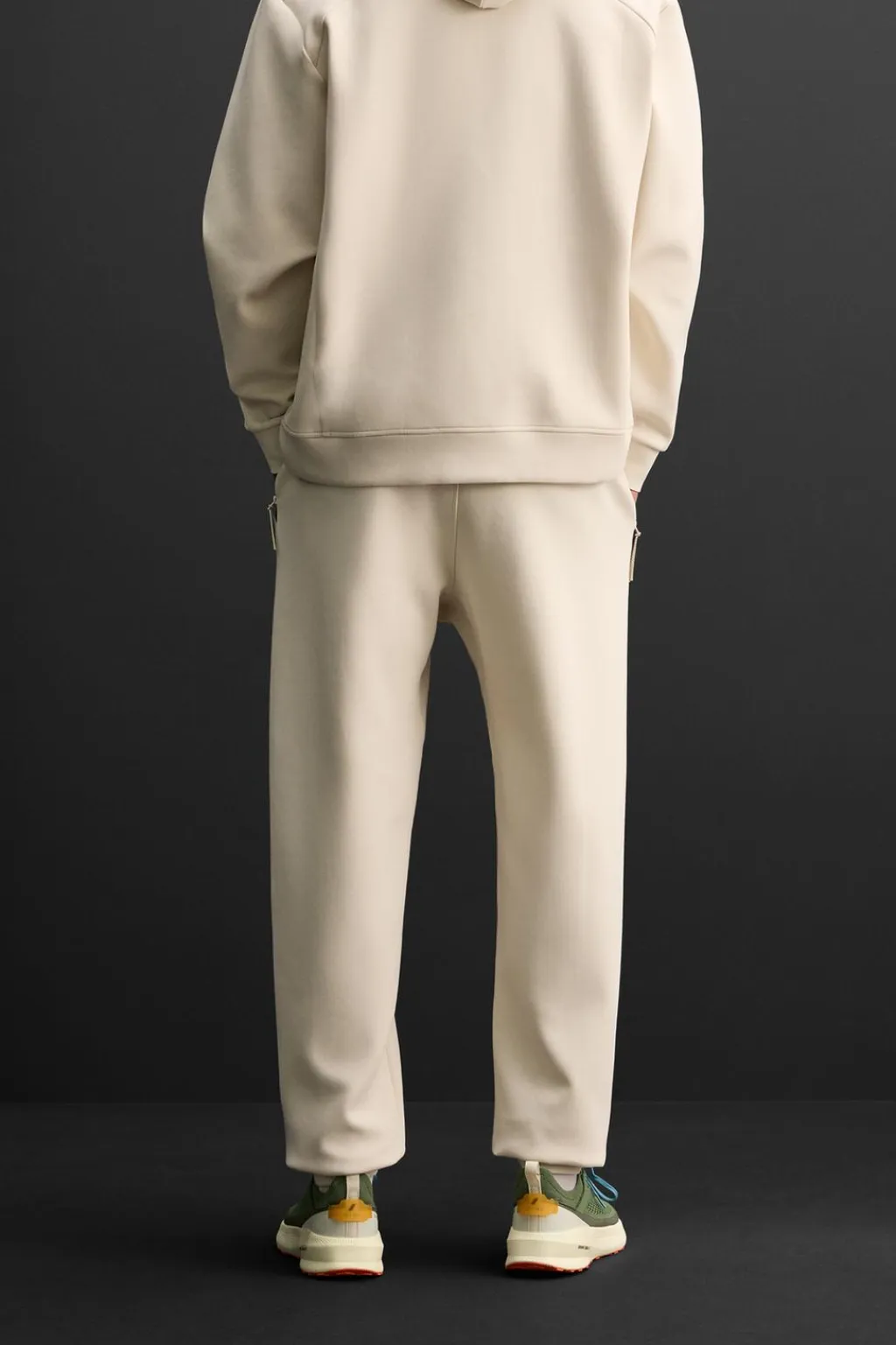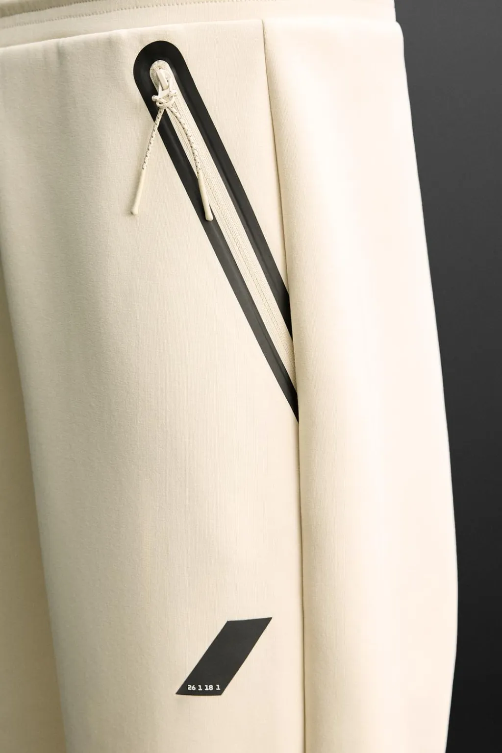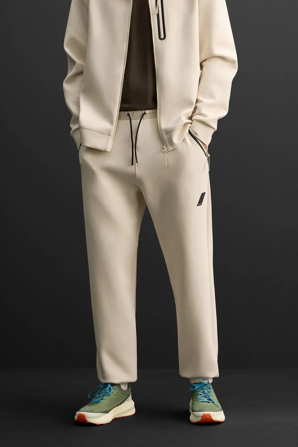 Pantalón relaxed fit confeccionado en tejido técnico de algodón con alta elasticidad. Cintura elástica ajustable con cordón. Bolsillos frontales termofijados y con cierre de cremallera. Aplicación de logo. Bajo acabado en puño de rib.