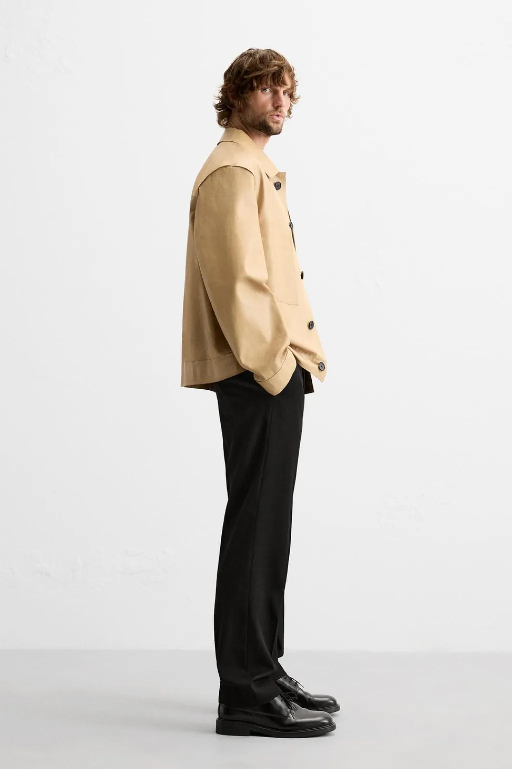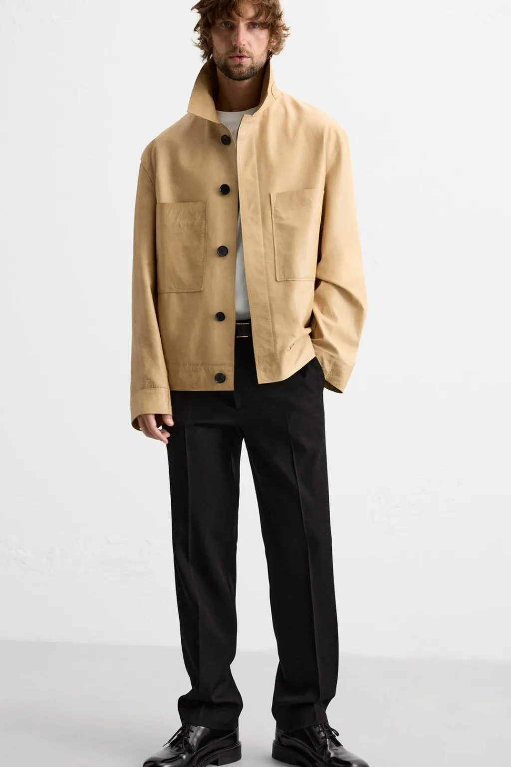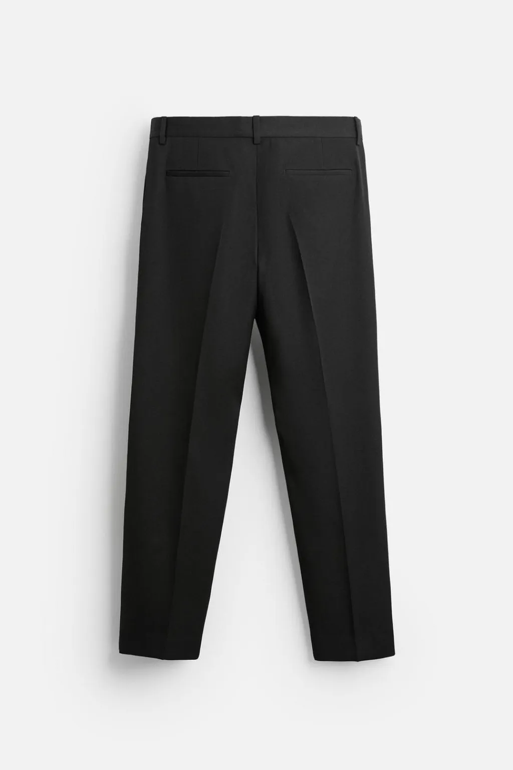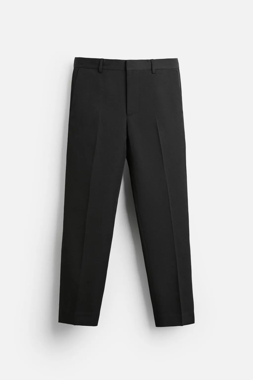 Pantalón slim fit confeccionado en tejido ligero de lana. Bolsillos frontales y detalle de bolsillos traseros de vivo. Cierre frontal con cremallera y gancho metálico oculto.