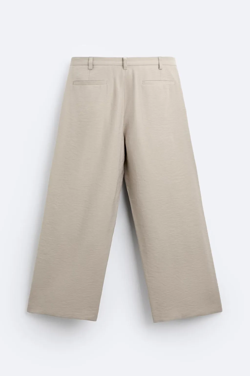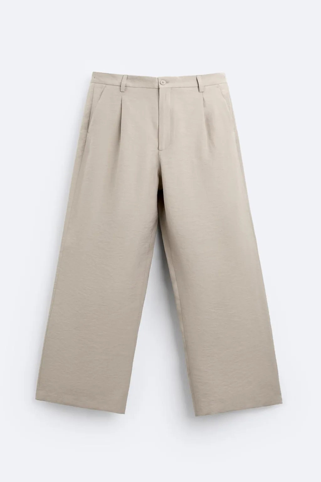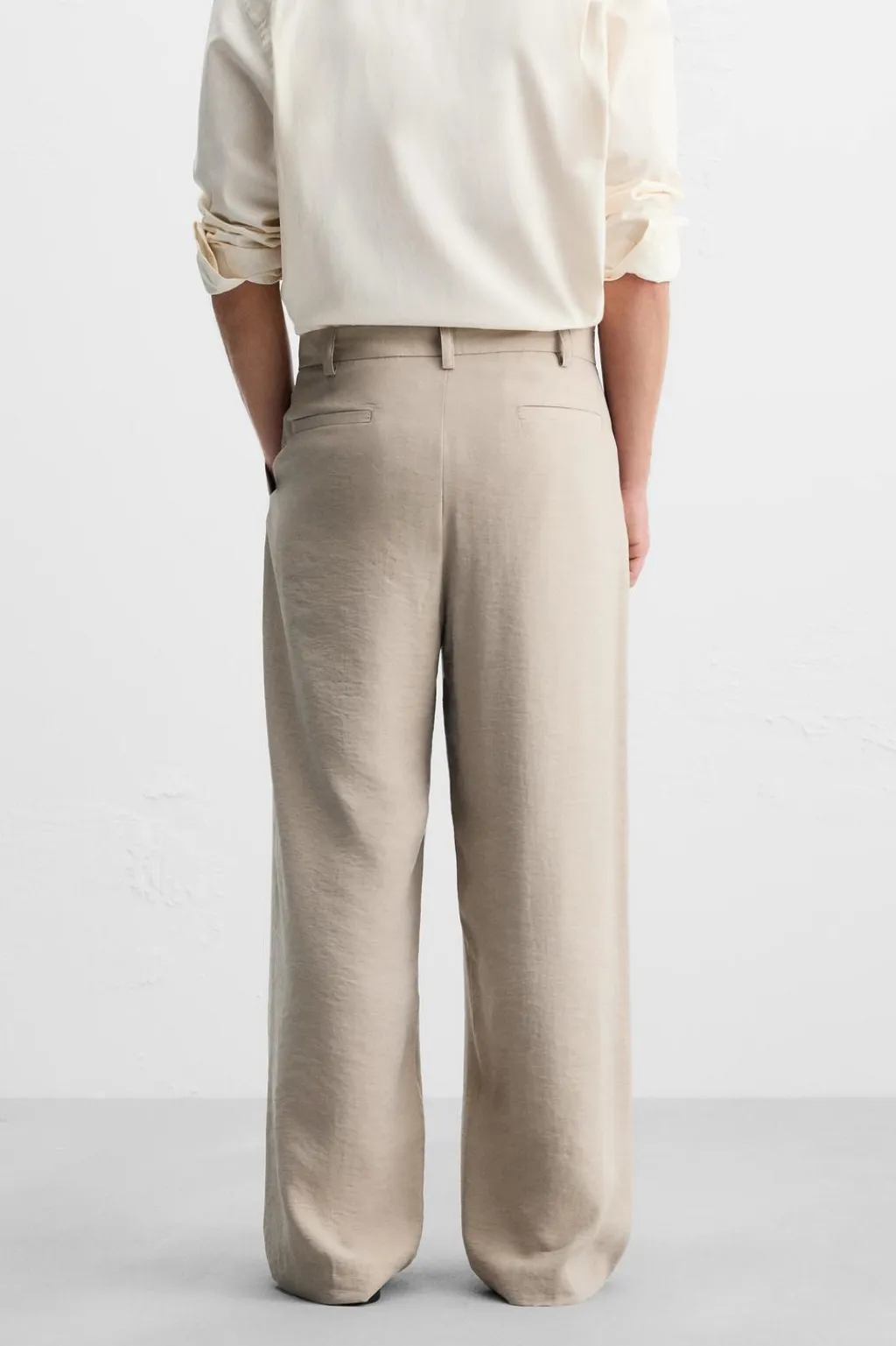 Pantalón relaxed fit confeccionado en tejido ligero con mezcla de modal. Cintura con detalle de pliegues frontales. Bolsillos delanteros y bolsillos traseros de vivo. Cierre frontal con cremallera y botón.