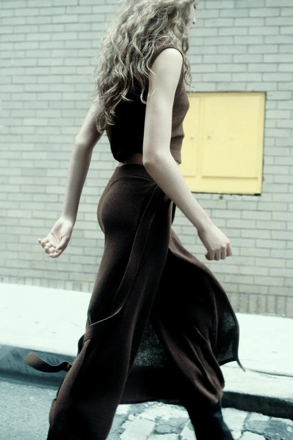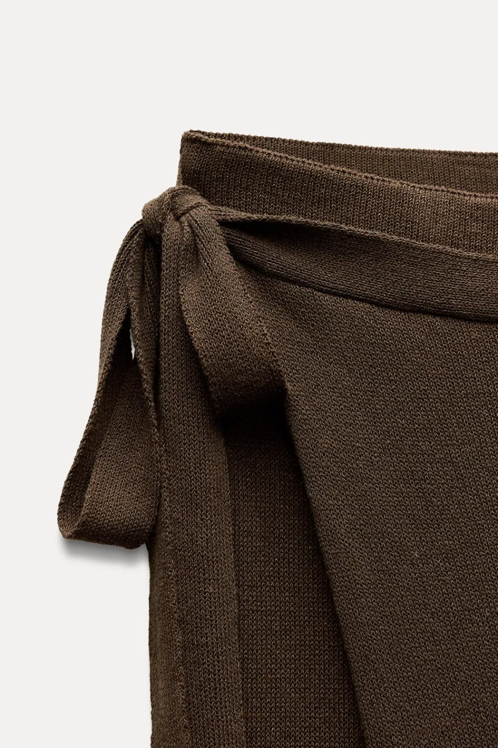 Pantalón con delantero cruzado y lazada lateral. Tiro alto con cintura elástica. Pernera ancha.