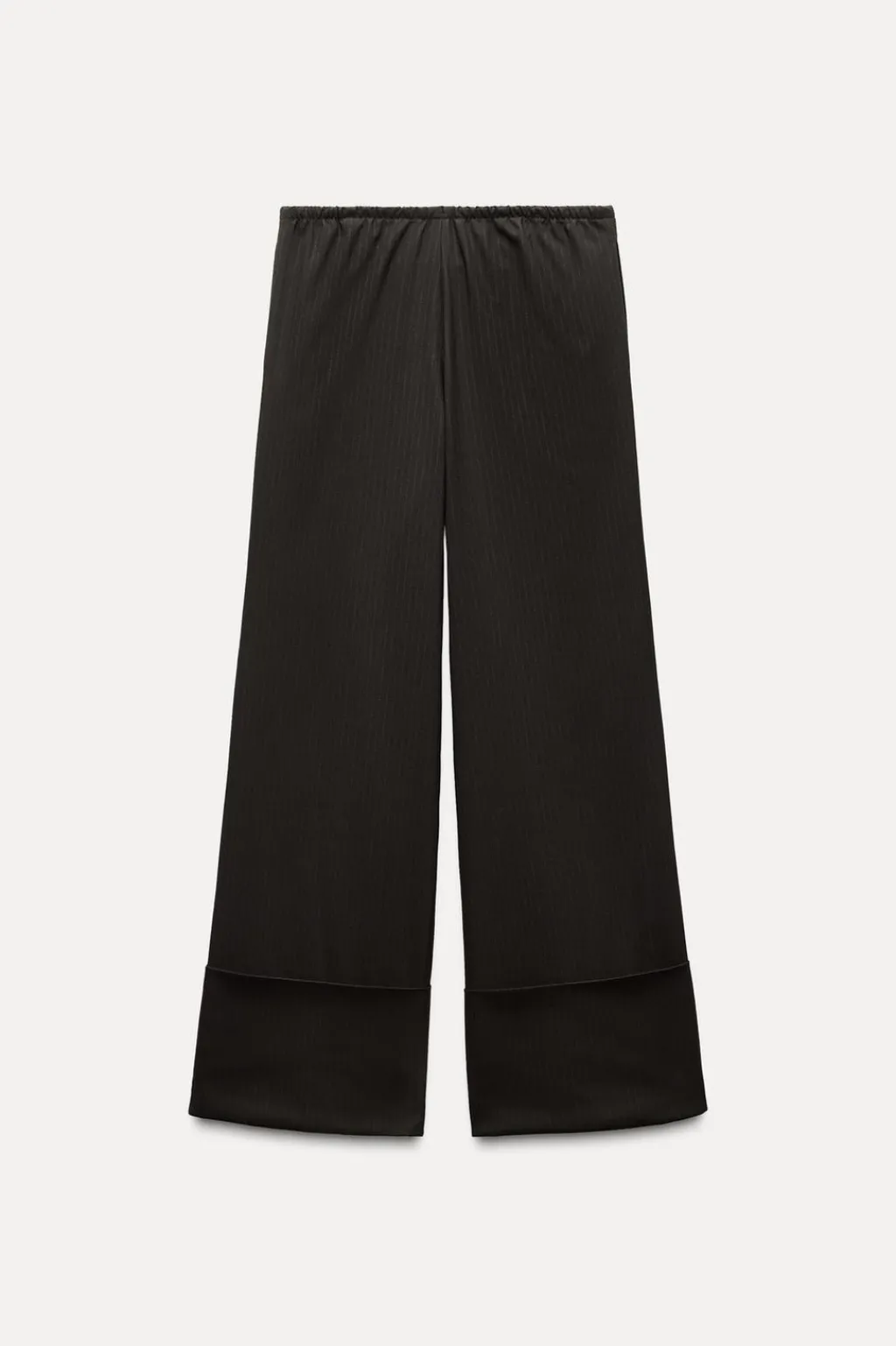 Pantalón pijamero confeccionado en hilatura con viscosa. Tiro medio y cintura ajustable con cordones. Bolsillos laterales ocultos en costura. Pierna ancha.