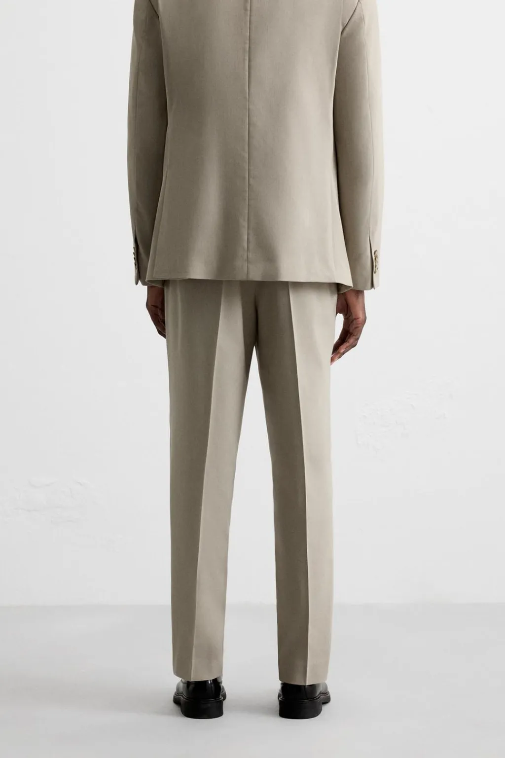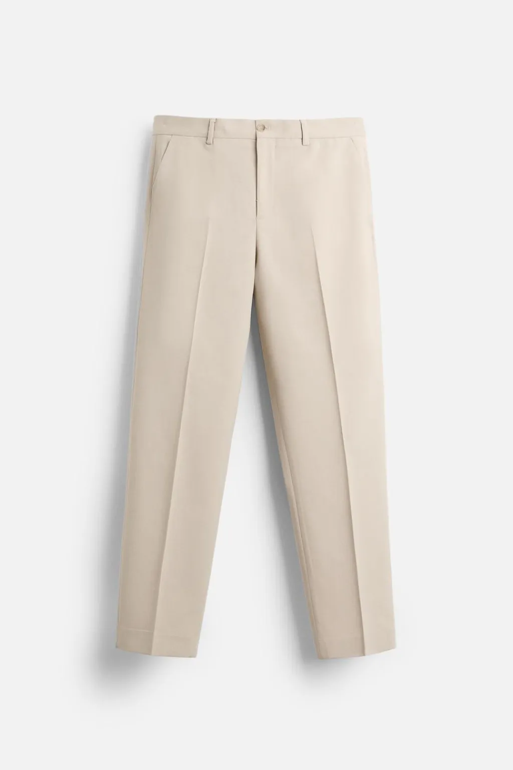 Pantalón slim fit. Bolsillos frontales y detalle de bolsillos traseros de doble vivo con botón. Cierre frontal con cremallera y botón.