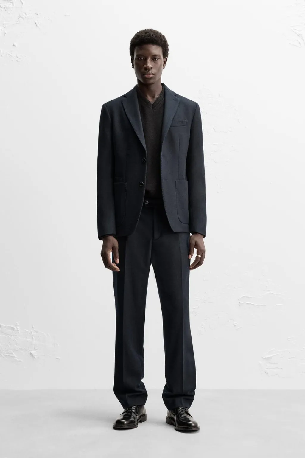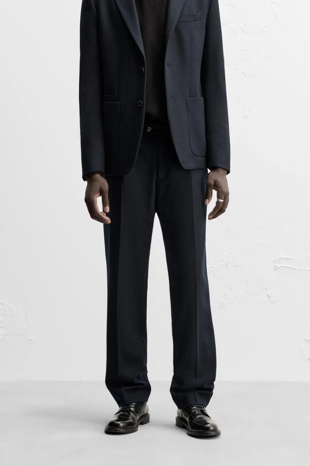 Pantalón regular fit confeccionado en tejido de lana con origen italiano.