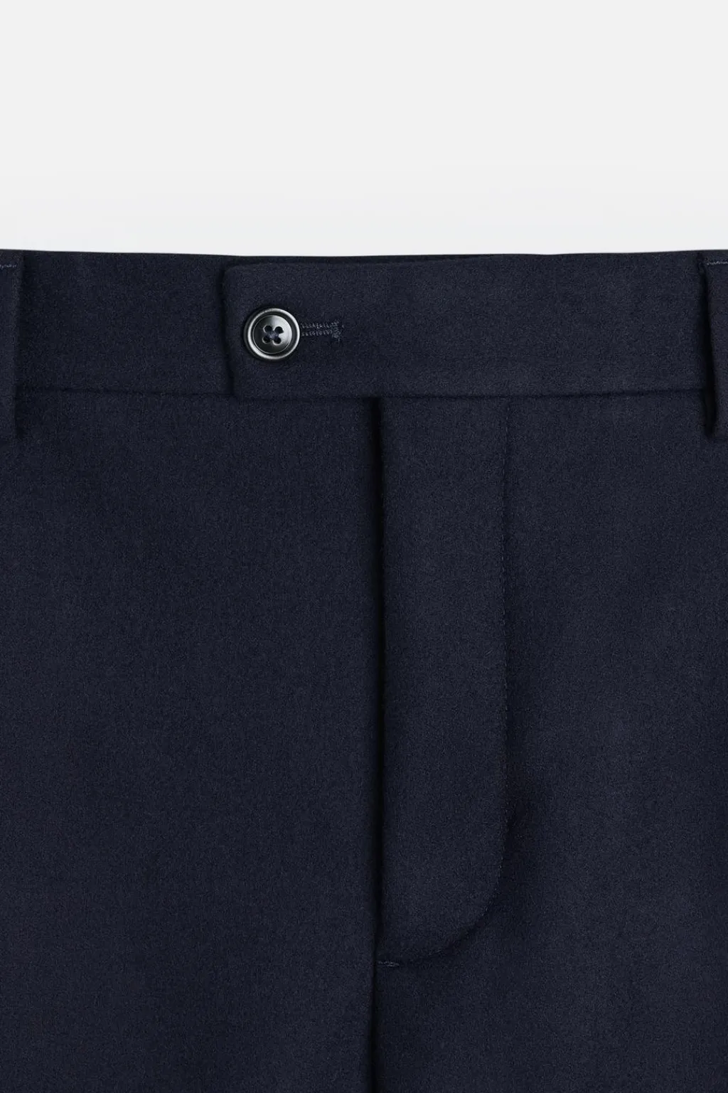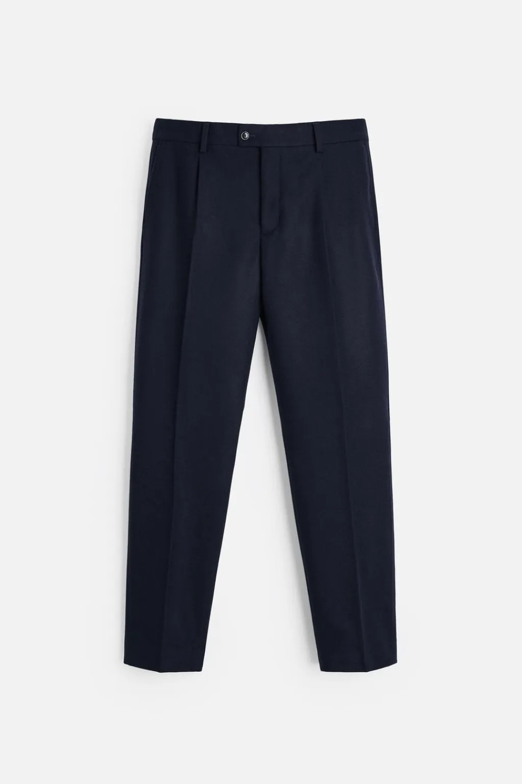 Cintura con detalle de pliegues frontales. Bolsillos en delantero y detalle de bolsillos traseros de doble vivo con botón. Cierre frontal con cremallera y botón cruzado.