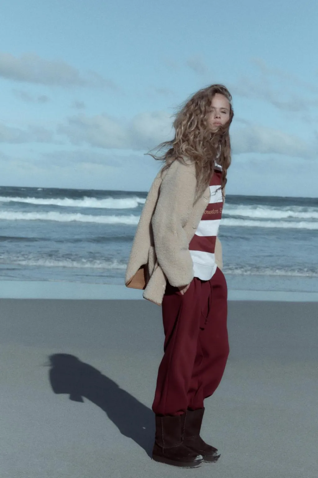 Pantalón de tiro alto con cintura elástica ajustable con cordones. Bolsillos laterales. Texto bordado a contraste. Bajo acabado en puño elástico.