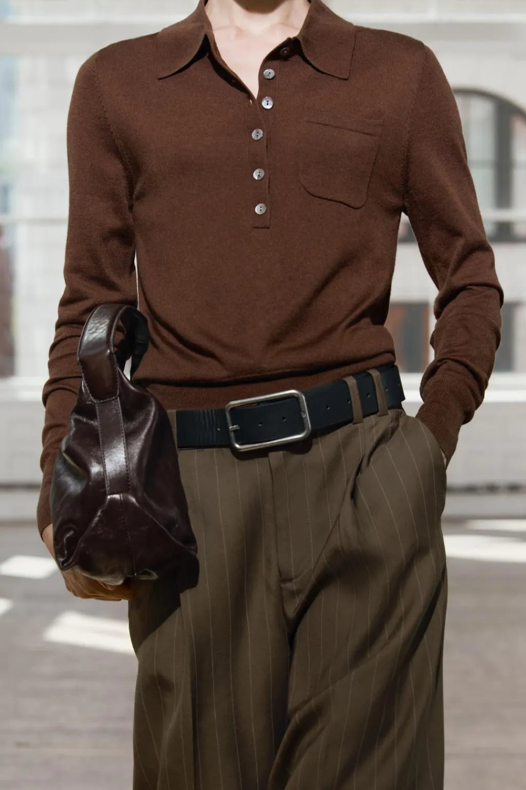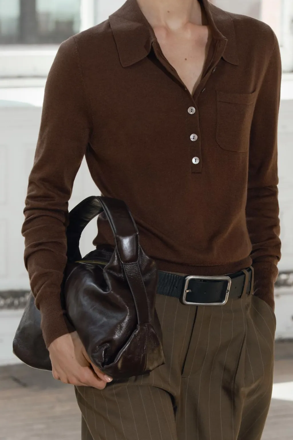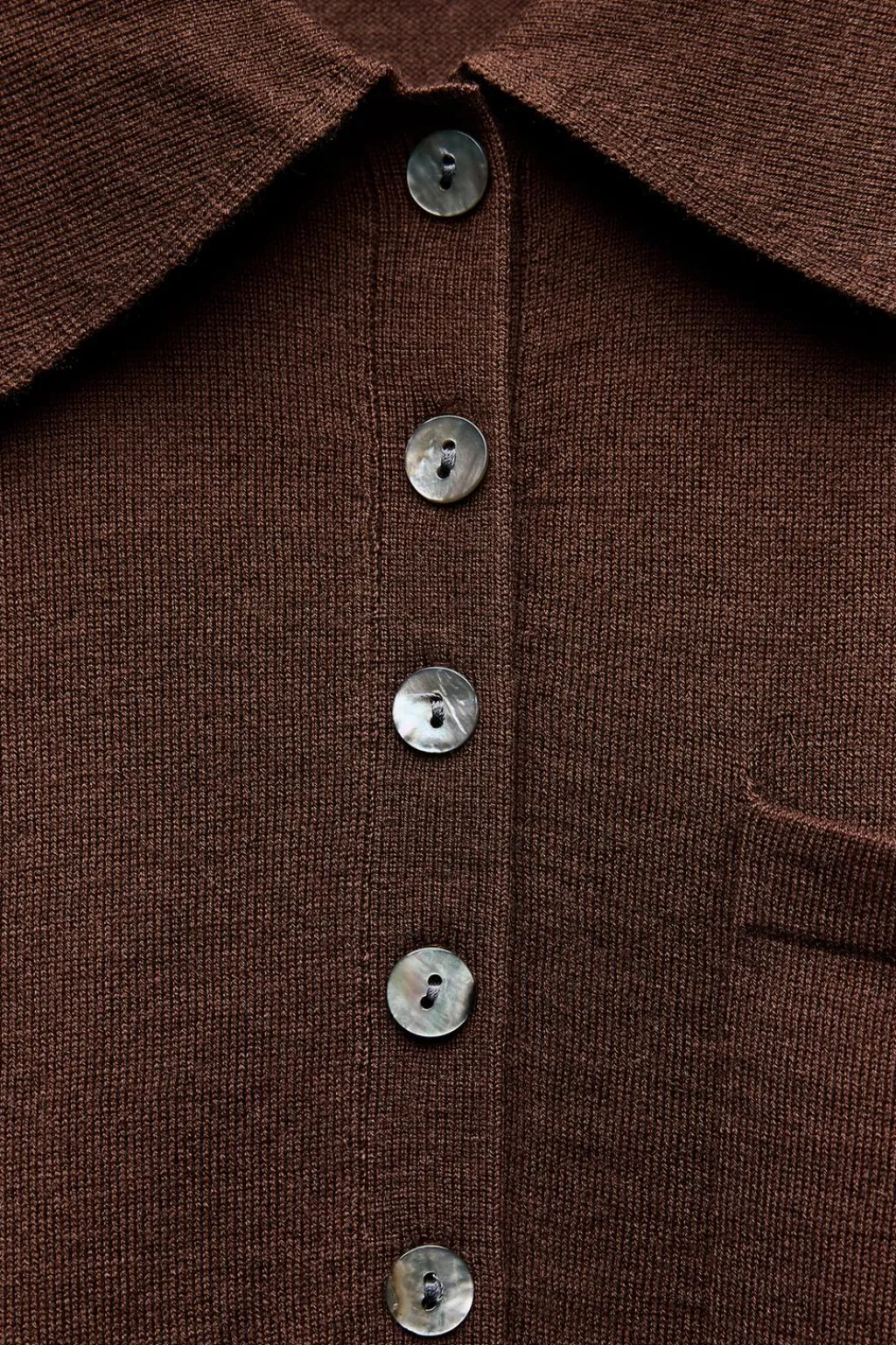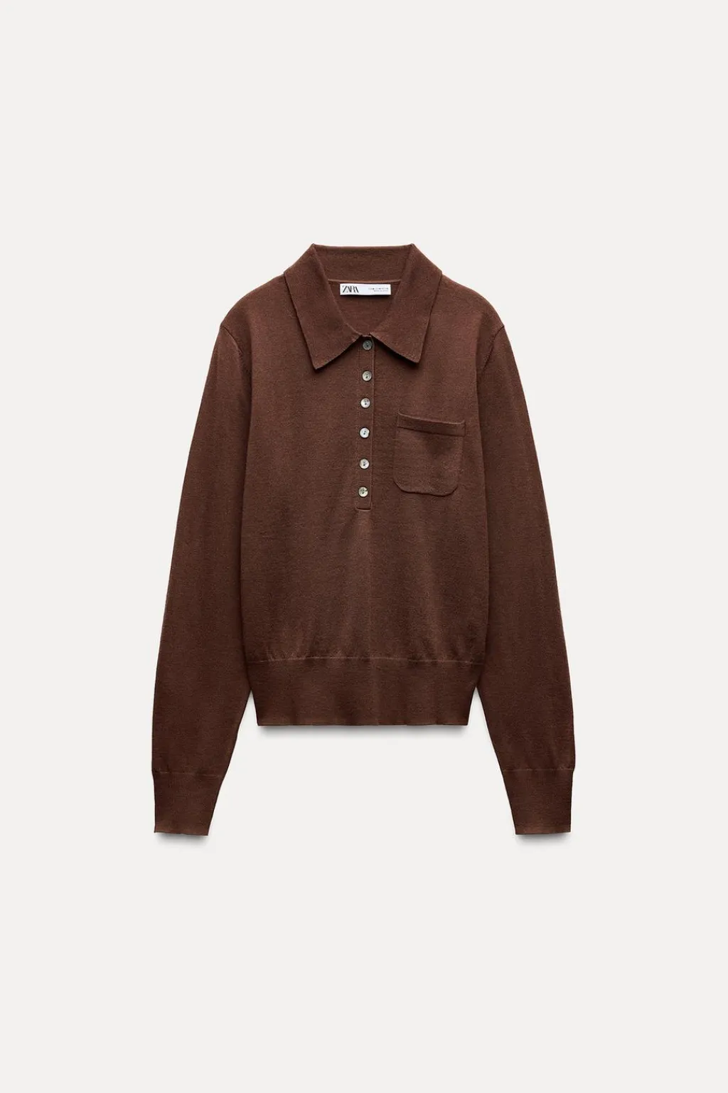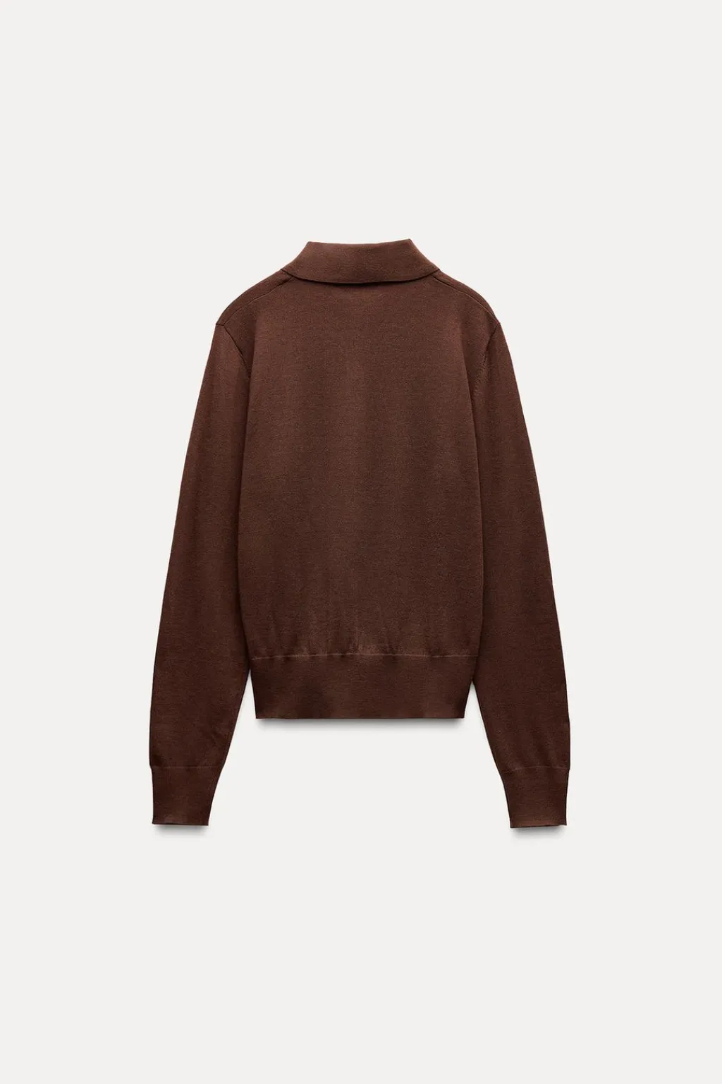 Polo liso confeccionado con lana. Cuello solapa y manga larga. Bolsillo delantero de plastrón. Botones delanteros.