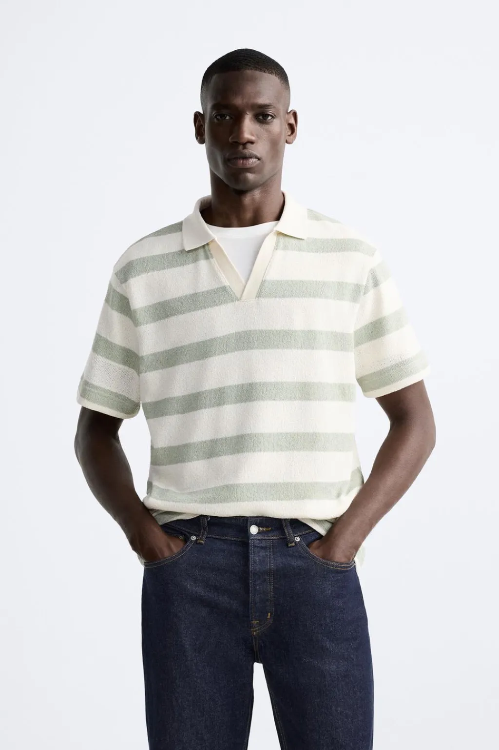 Polo relaxed fit. Cuello solapa con abertura frontal. Manga corta.