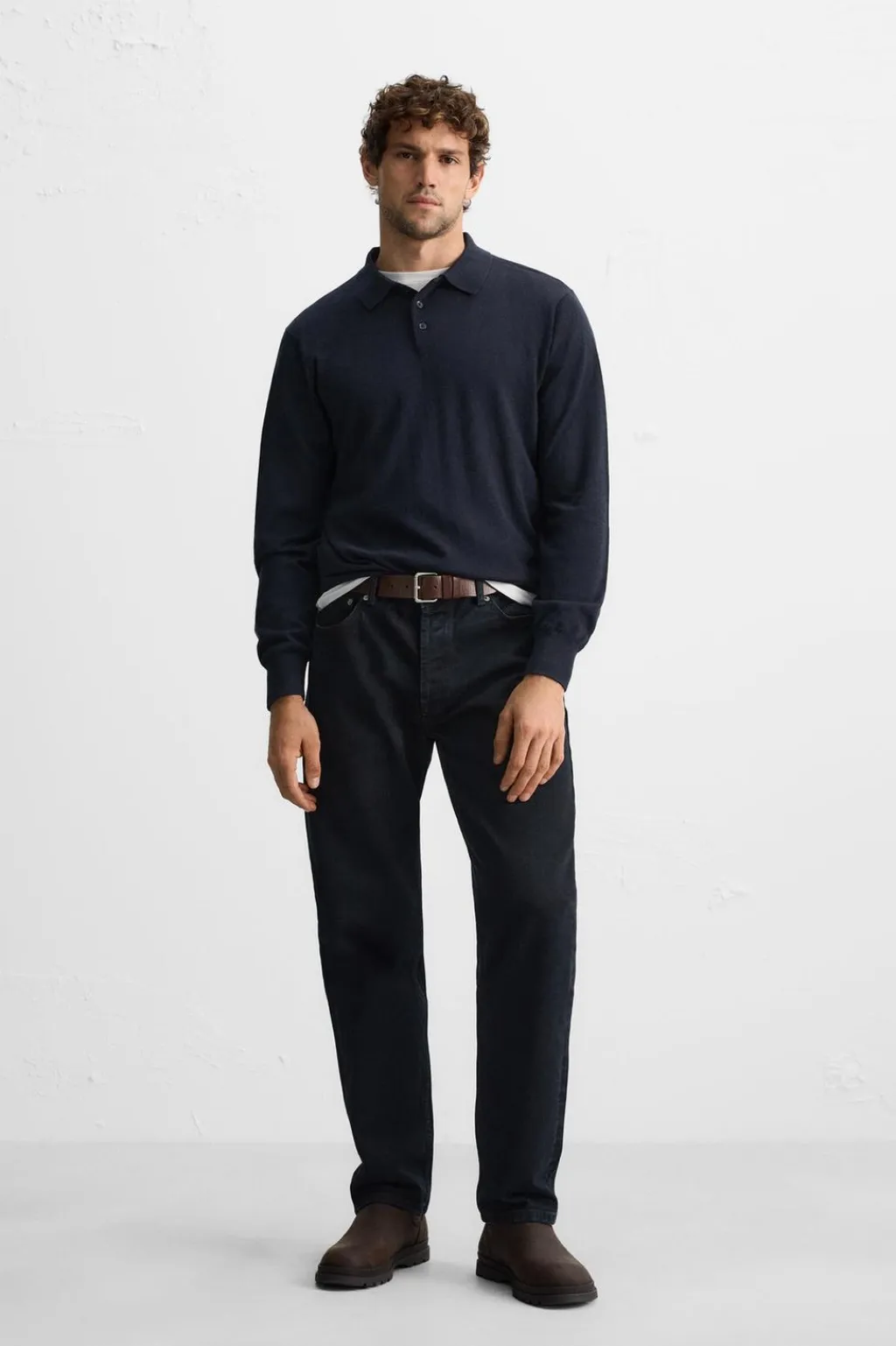 Polo punto regular fit tejido en hilatura de cashmere. Cuello solapa con cierre frontal de botonadura y manga larga. Acabados en rib.