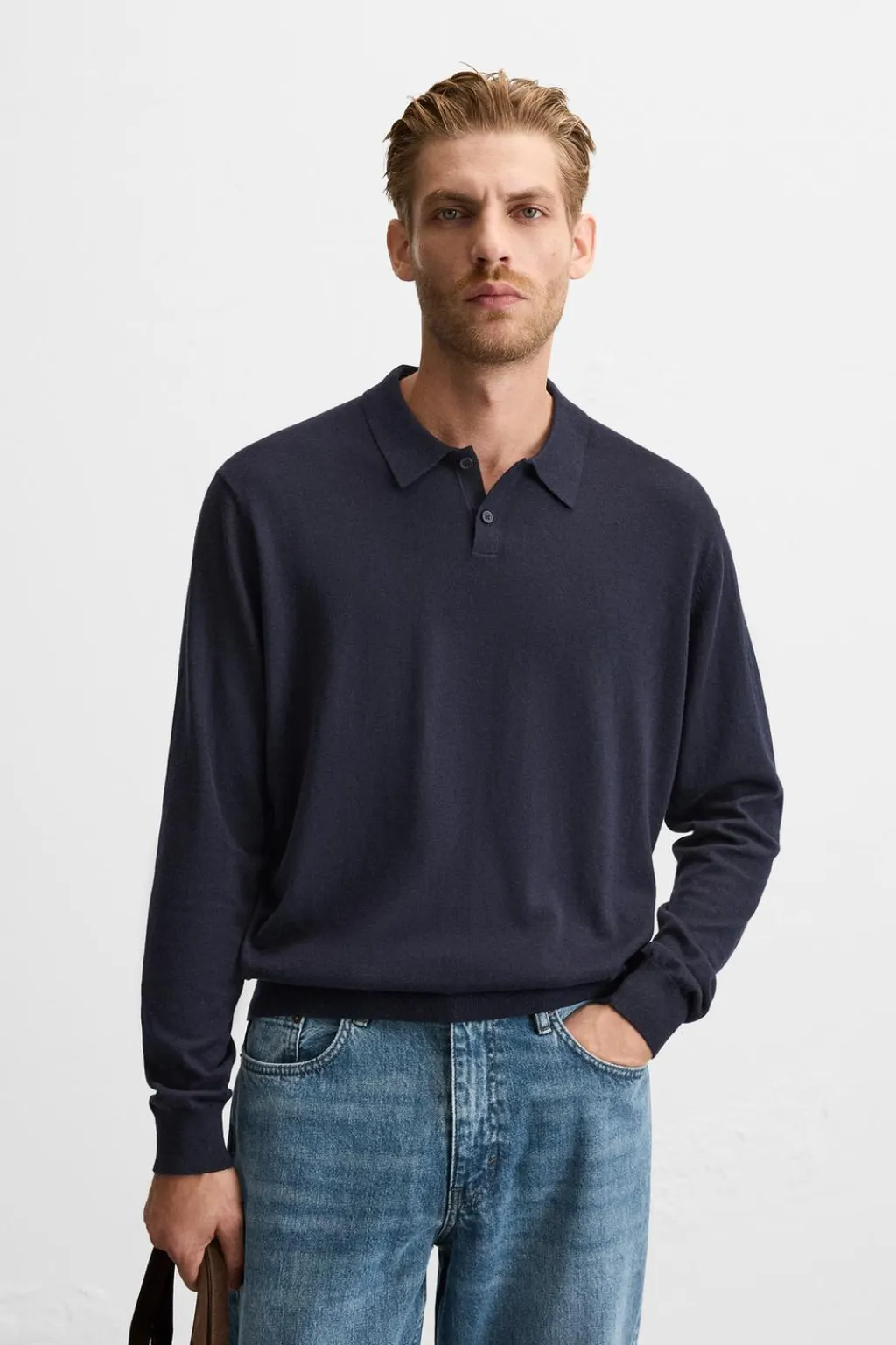 Polo regular fit tejido en hilatura ligera con mezcla de algodón, seda y 4% cashmere. Cuello solapa con cierre frontal de botonadura. Manga larga. Acabados en rib.