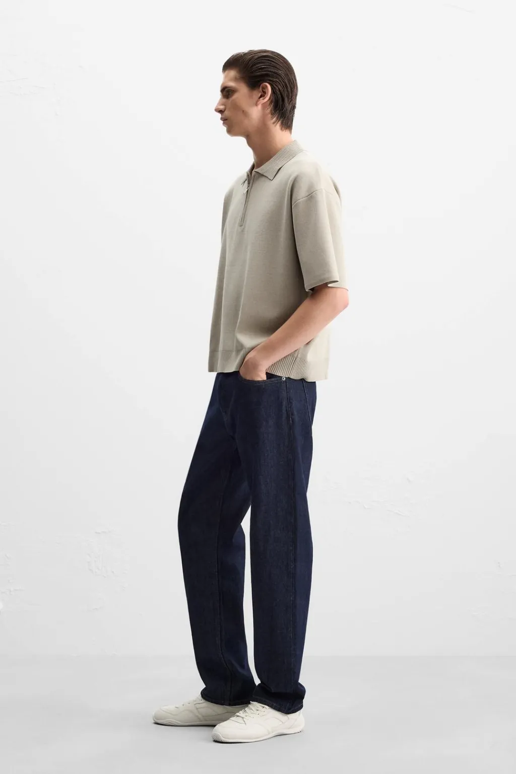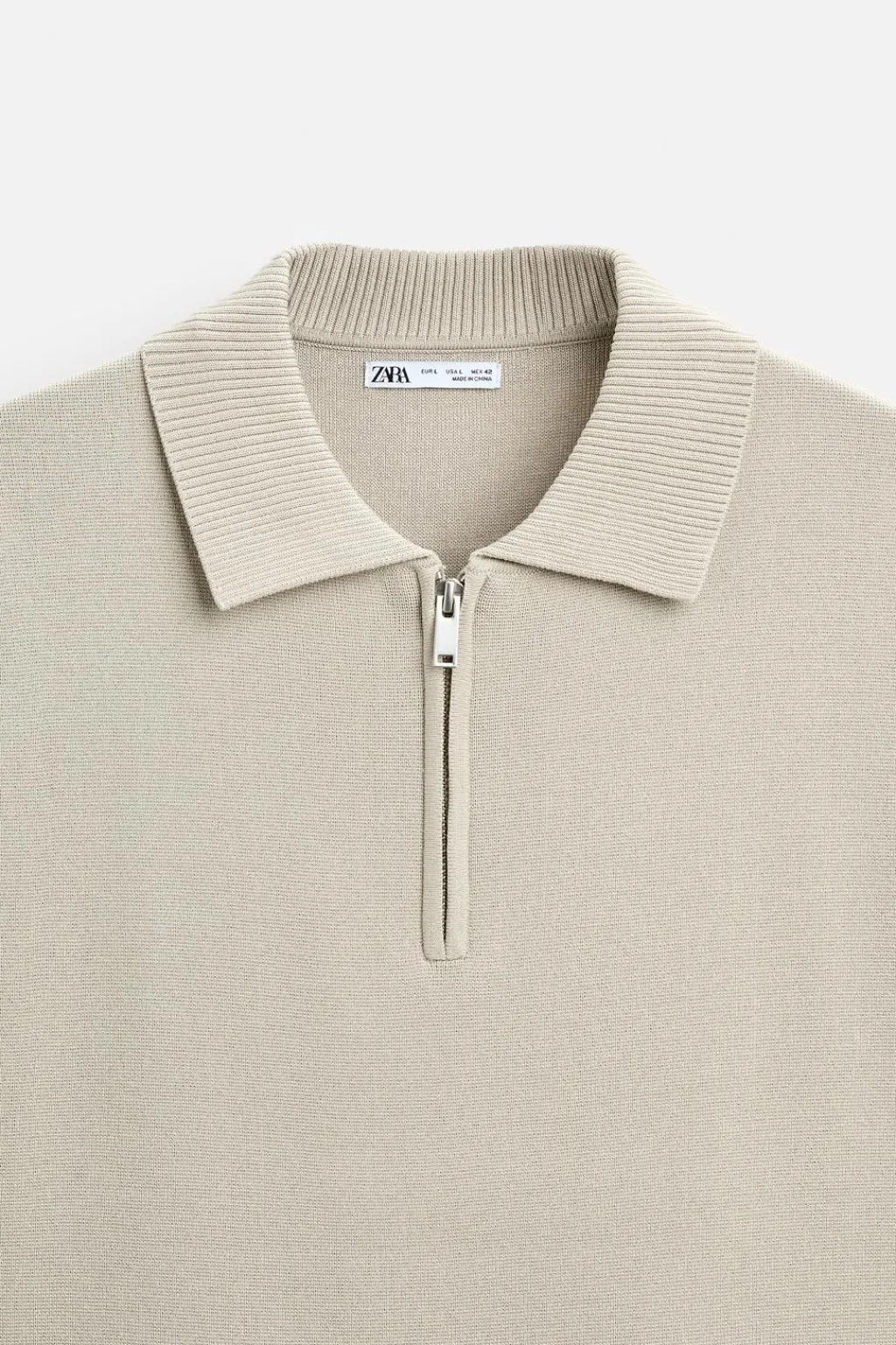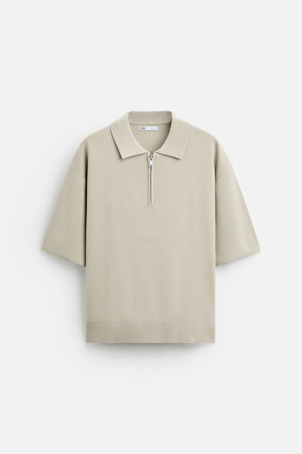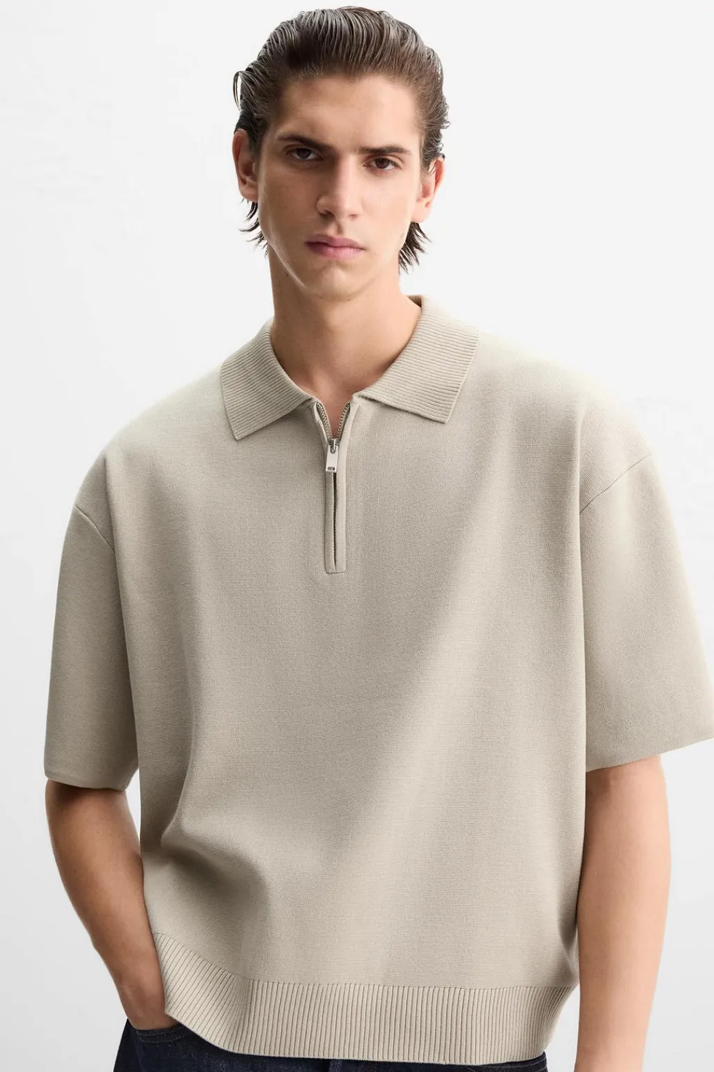 Polo de punto tejido en hilatura con viscosa. Cuello solapa con cierre frontal de cremallera. Manga corta. Acabados en rib.