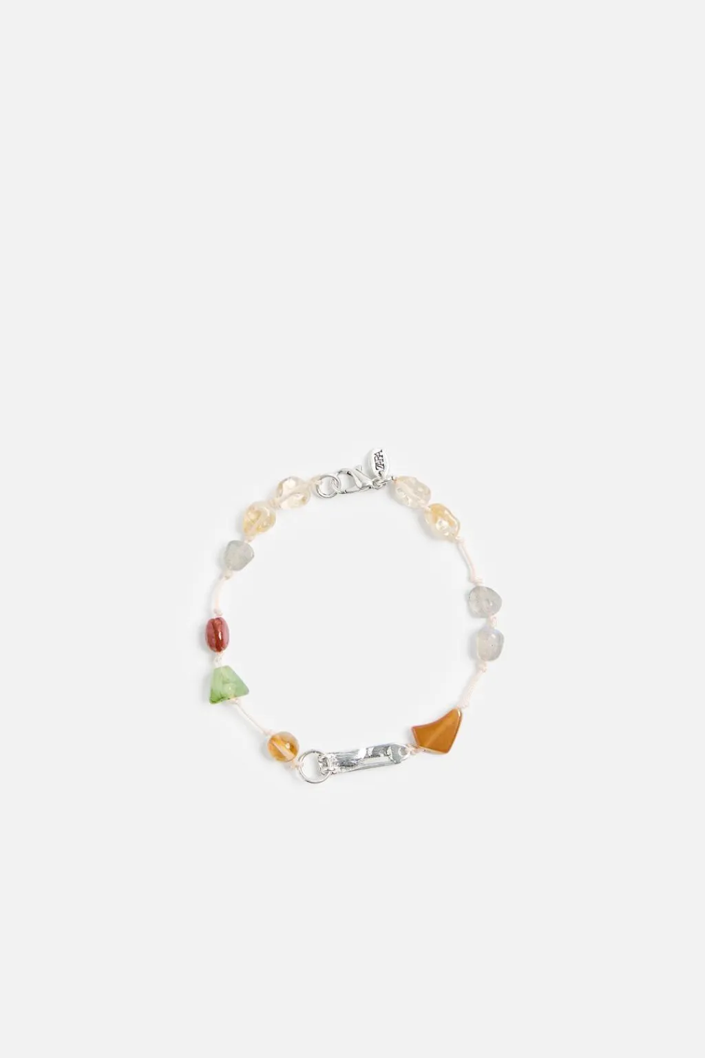 Pulsera compuesta por piedras combinadas a contraste. Cierre con mosquetón.
