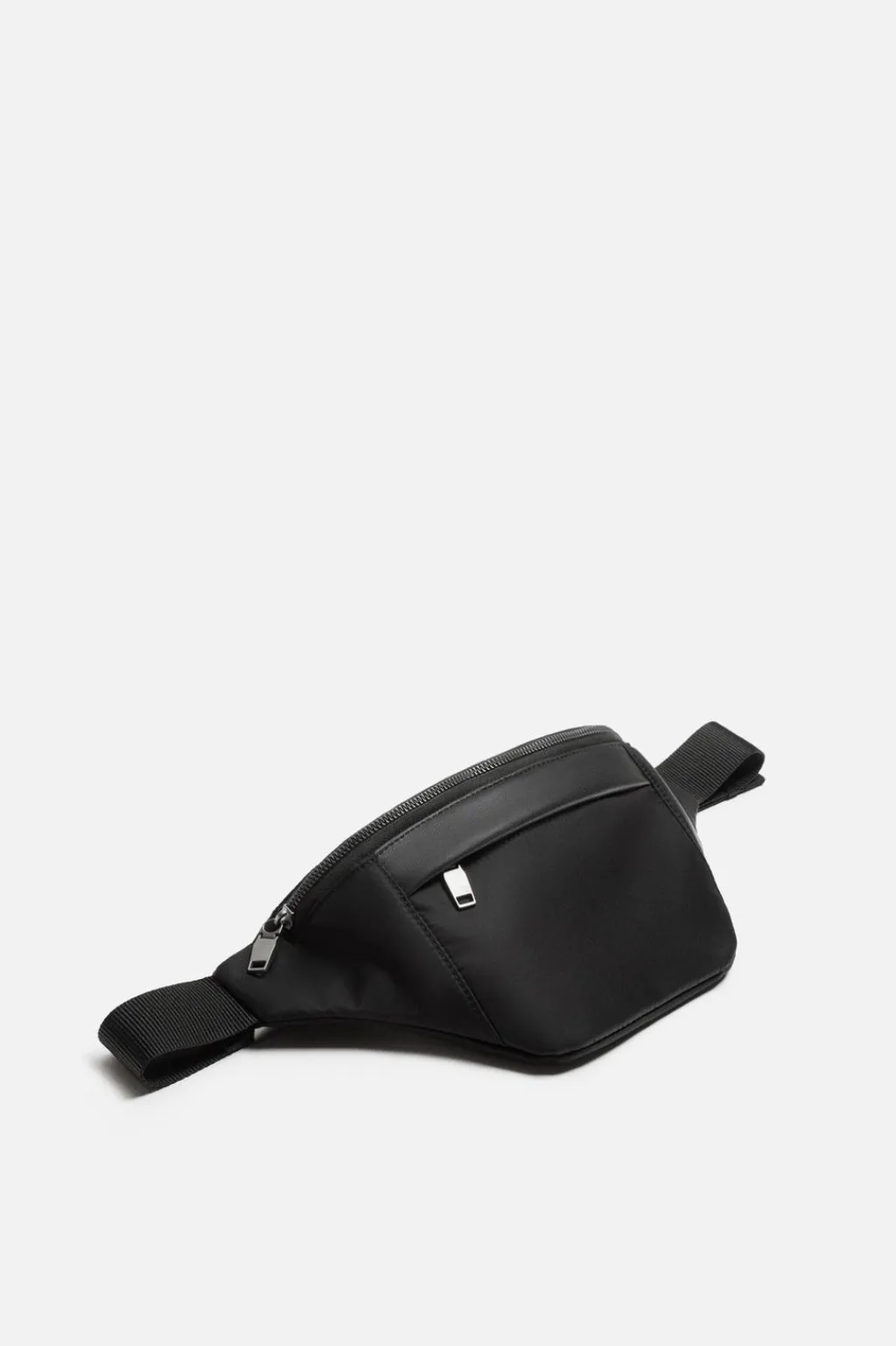 Riñonera fabricada en combinación con tejido técnico. Compartimento principal con cierre mediante cremallera. Bolsillos secundarios frontal y trasero. El interior cuenta con un bolsillo pequeño. Asa ajustable con hebilla de liberación rápida.