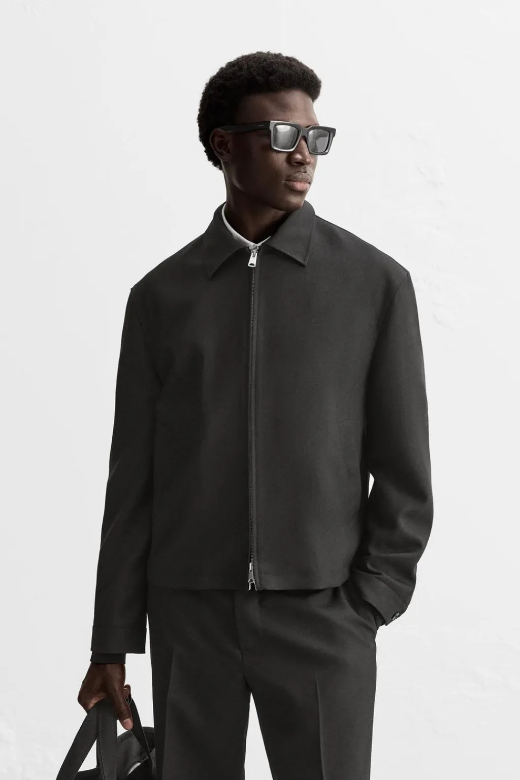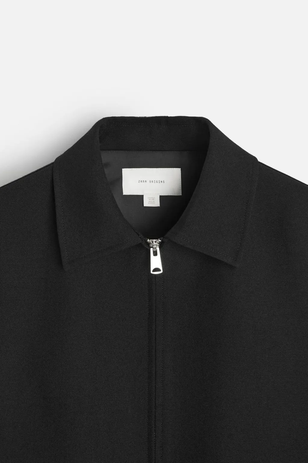 Cuello solapa y manga larga acabada en puño con botón. Bolsillos de vivo en cadera. Cierre frontal con cremallera.