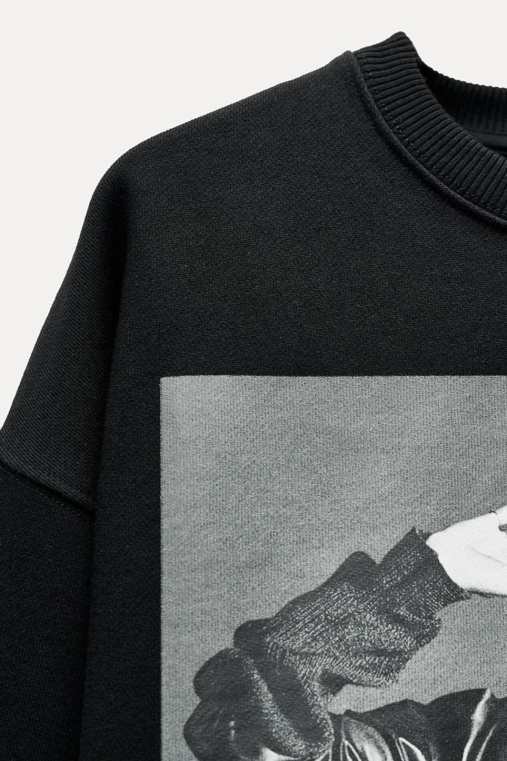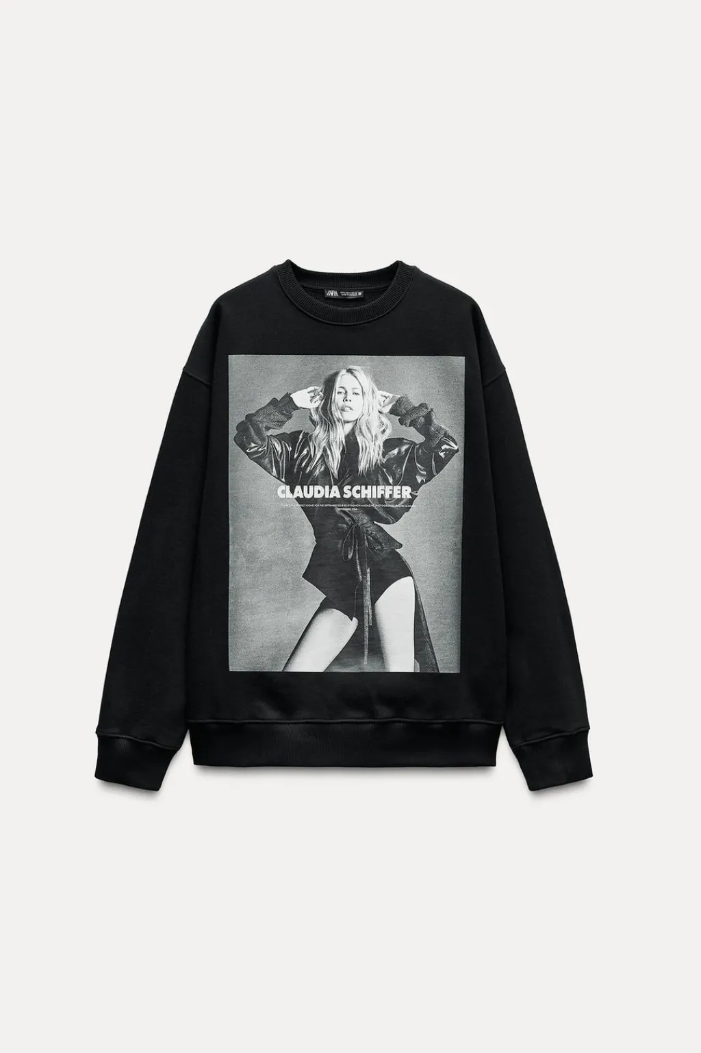 Sudadera confeccionada en hilatura con mezcla de algodón. Cuello redondo y manga larga. Detalle de estampación fotográfica Claudia Schiffer (Photo by Luigi & lango Licensed by Trunk Archive) en delantero. Acabados en rib a tono.