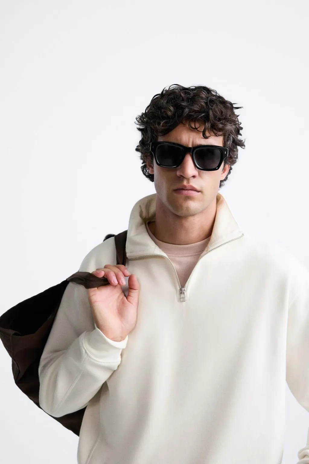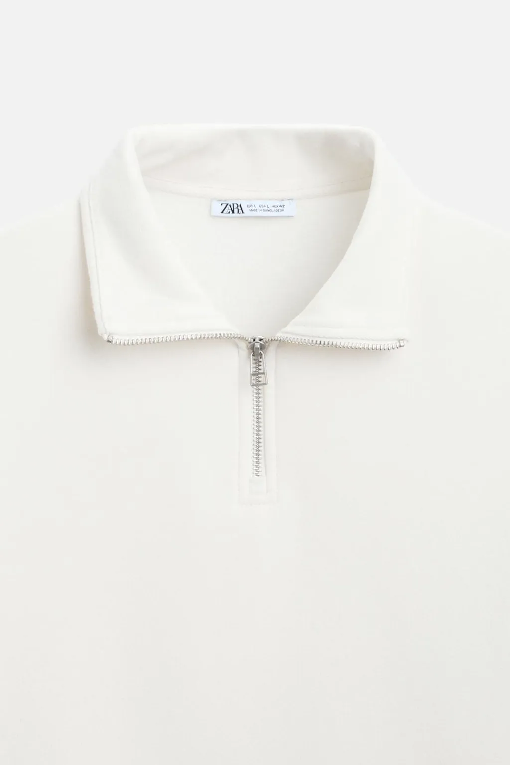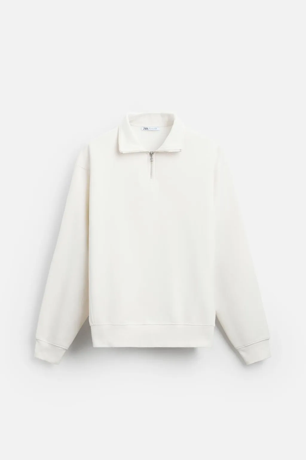 Sudadera de cuello subido con cierre frontal de cremallera. Manga larga. Acabados en rib.
